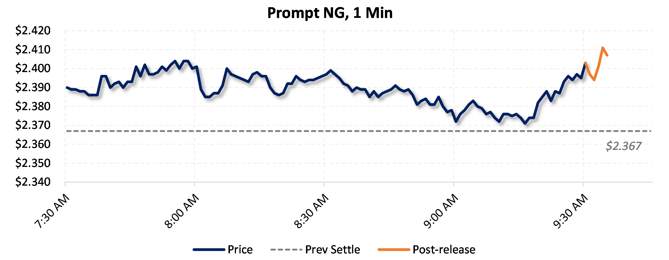 Prices were up in the five minutes following the announcement, to $2.404, from $2.397 just before 9:30am.
