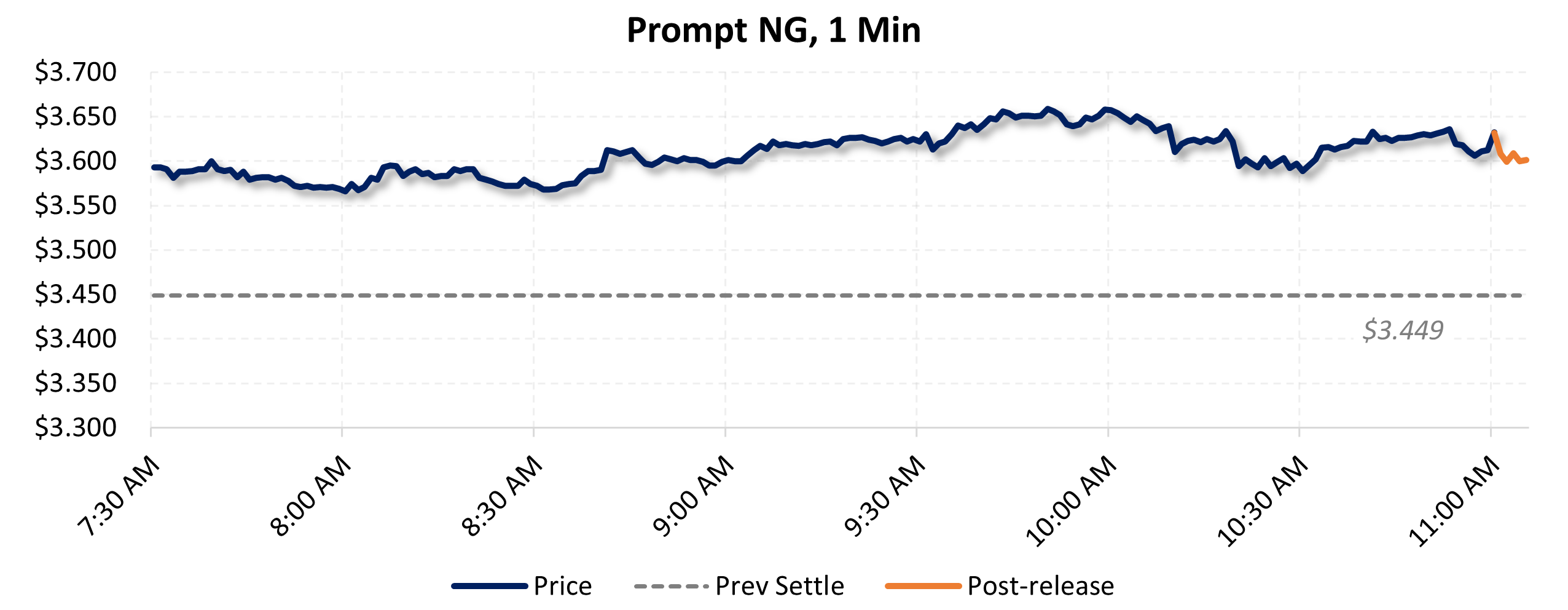 Prices were up in the five minutes following the announcement, to $3.63, from $3.625 just before 11:00am.