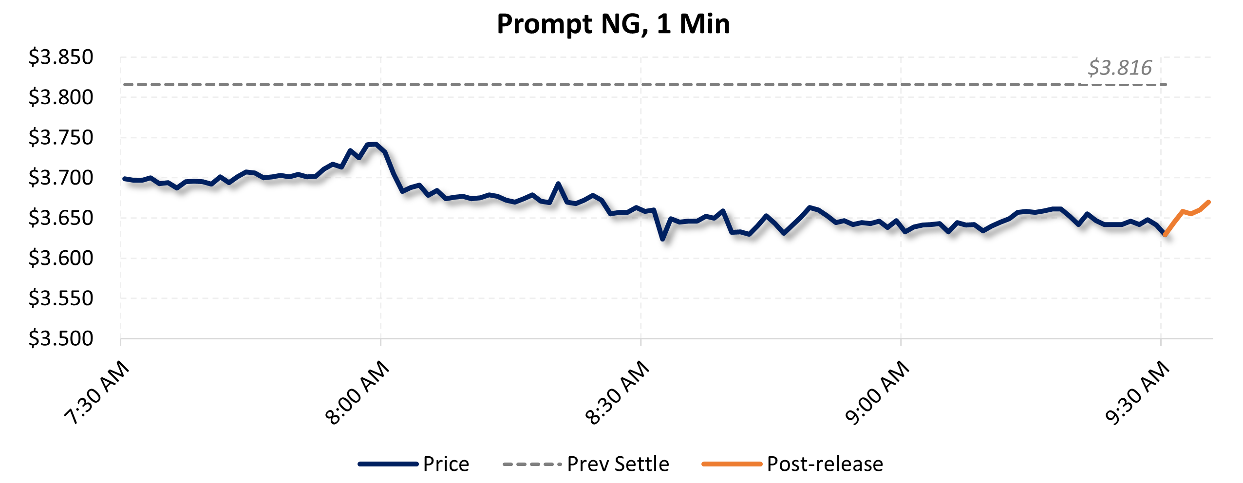 Prices were up in the five minutes following the announcement, to $3.67, from $3.641 just before 9:30am.