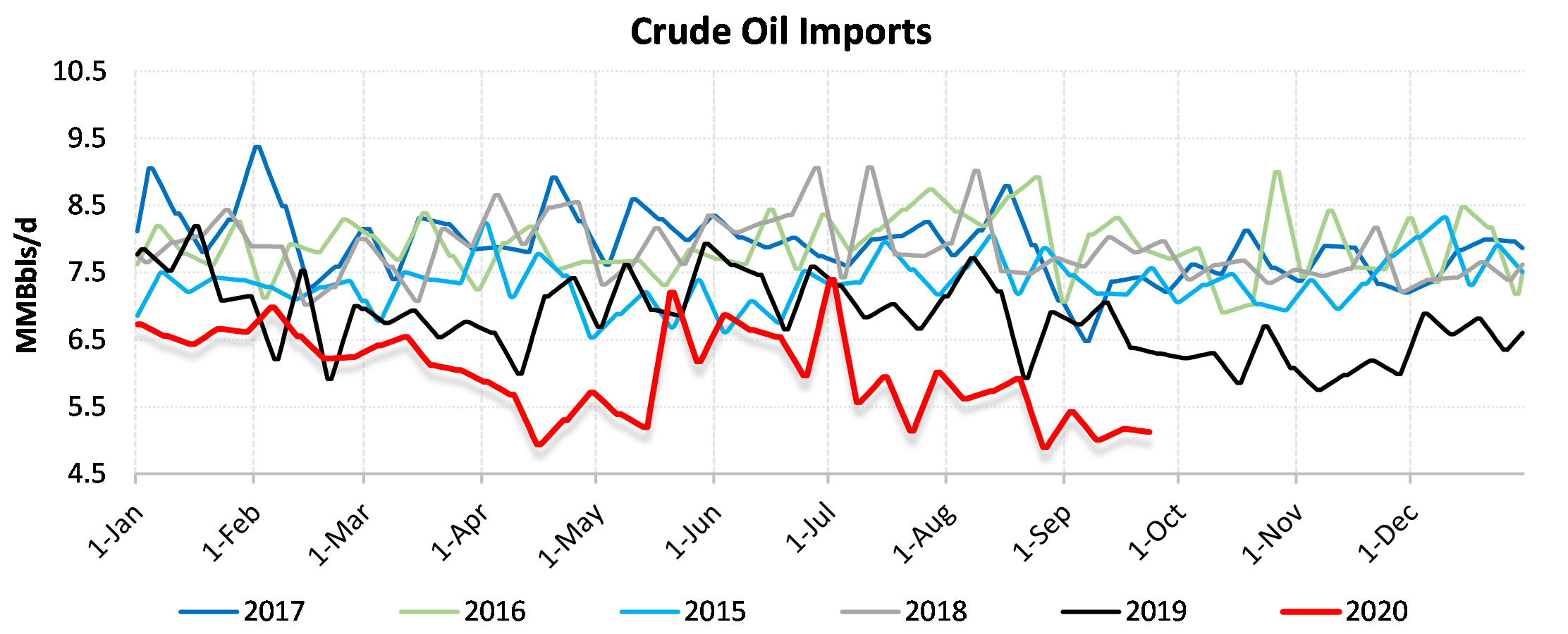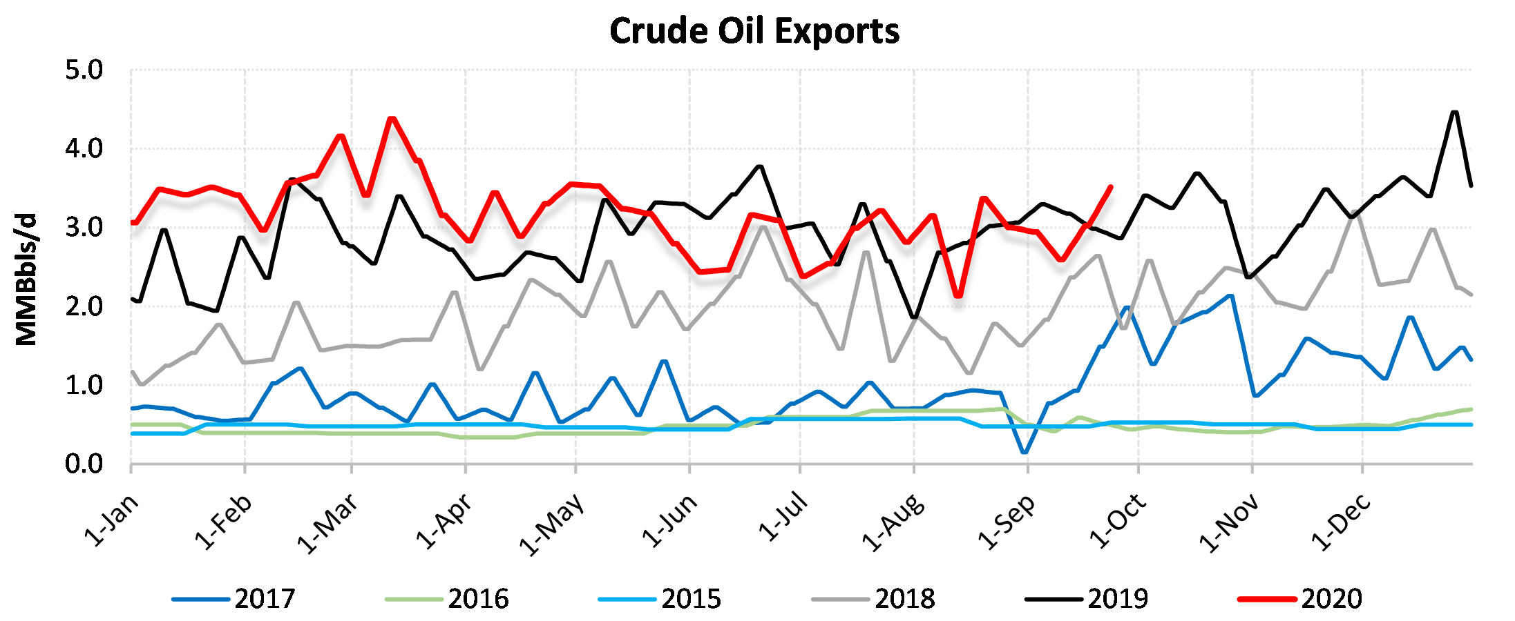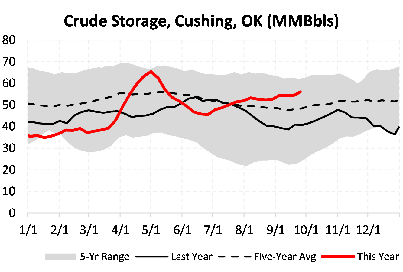 EIA reported a draw of -1980 MBbls in U.S. crude-oil inventories for the week ending 9/25/2020. This was larger than the average estimate of 456 MBbls as reported by Bloomberg.