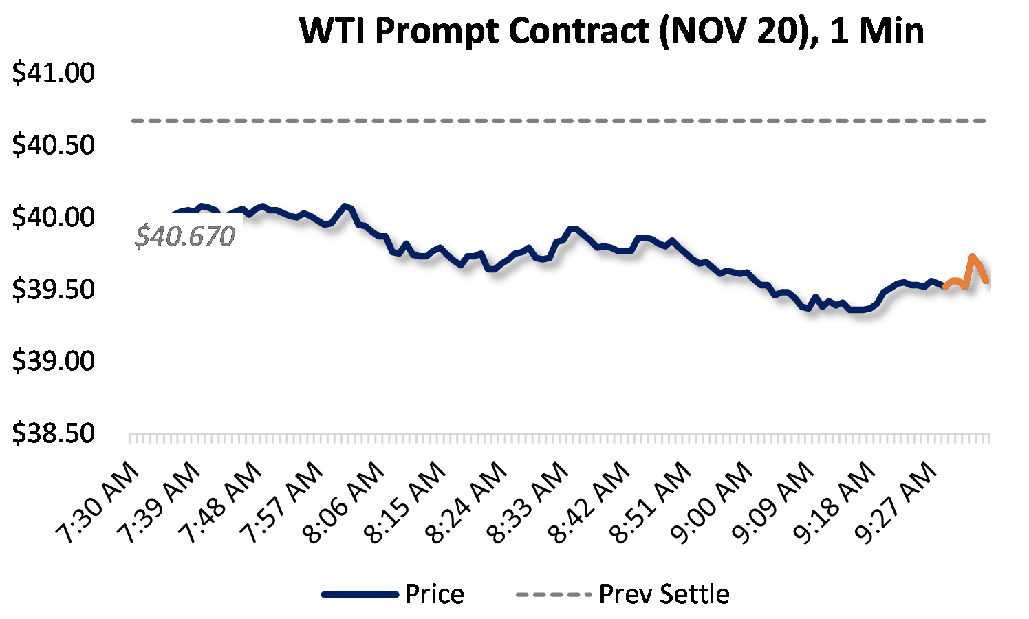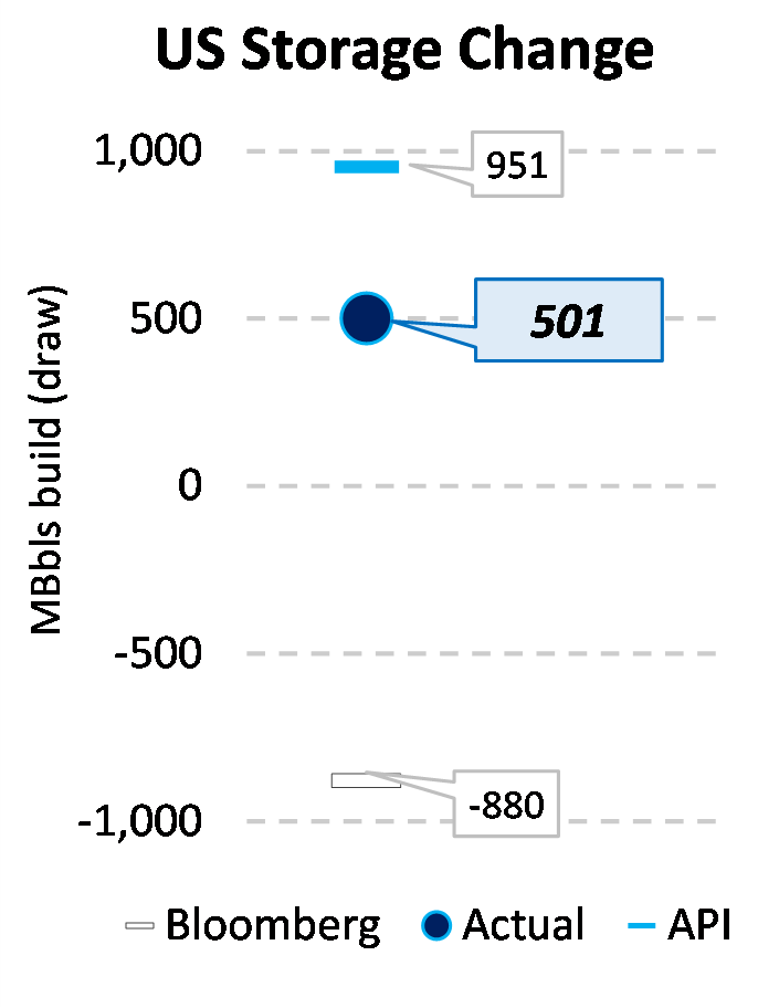 EIA reported a build of 501 MBbls in U.S. crude-oil inventories for the week ending 10/2/2020. This was smaller than the average estimate of -880 MBbls as reported by Bloomberg.