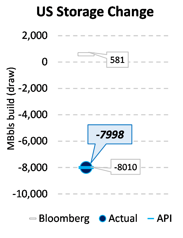 EIA reported a draw of -7998 MBbls in U.S. crude-oil inventories for the week ending 10/30/2020. This was larger than the average estimate of 581 MBbls as reported by Bloomberg.