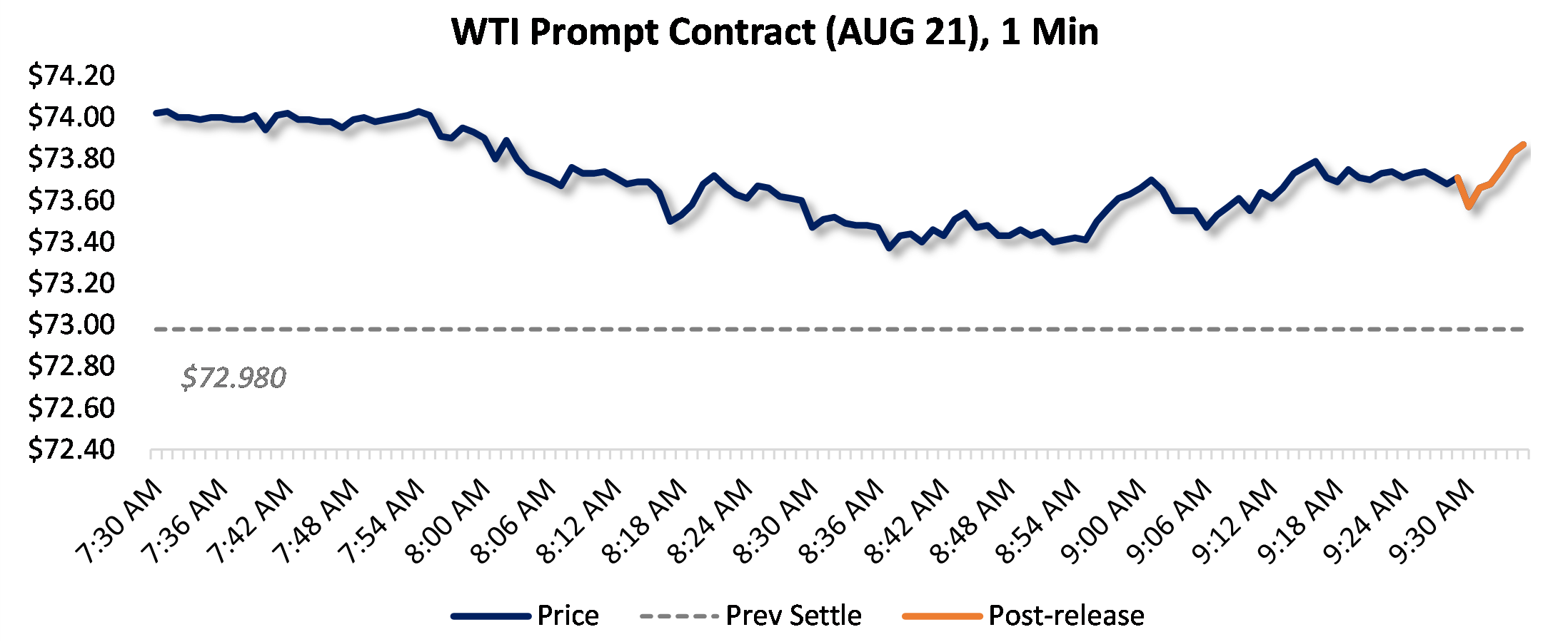 Prices were up five minutes following the announcement, to $73.87, from $73.71 just before 9:30am.
