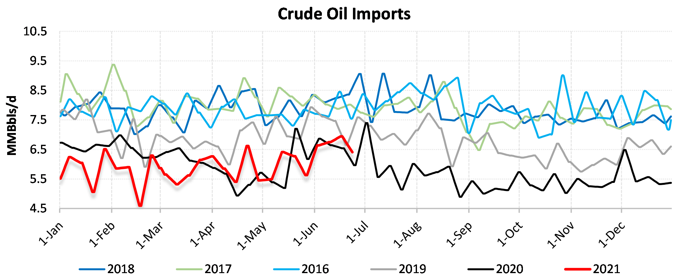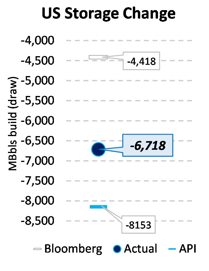 EIA reported a draw of -6718 MBbls in U.S. crude-oil inventories for the week ending 6/25/2021. This was larger than the average estimate of -4418 MBbls as reported by Bloomberg.