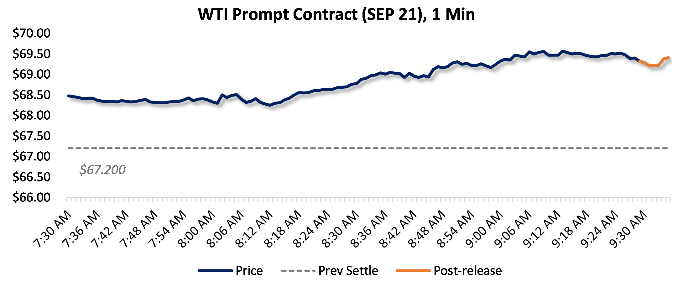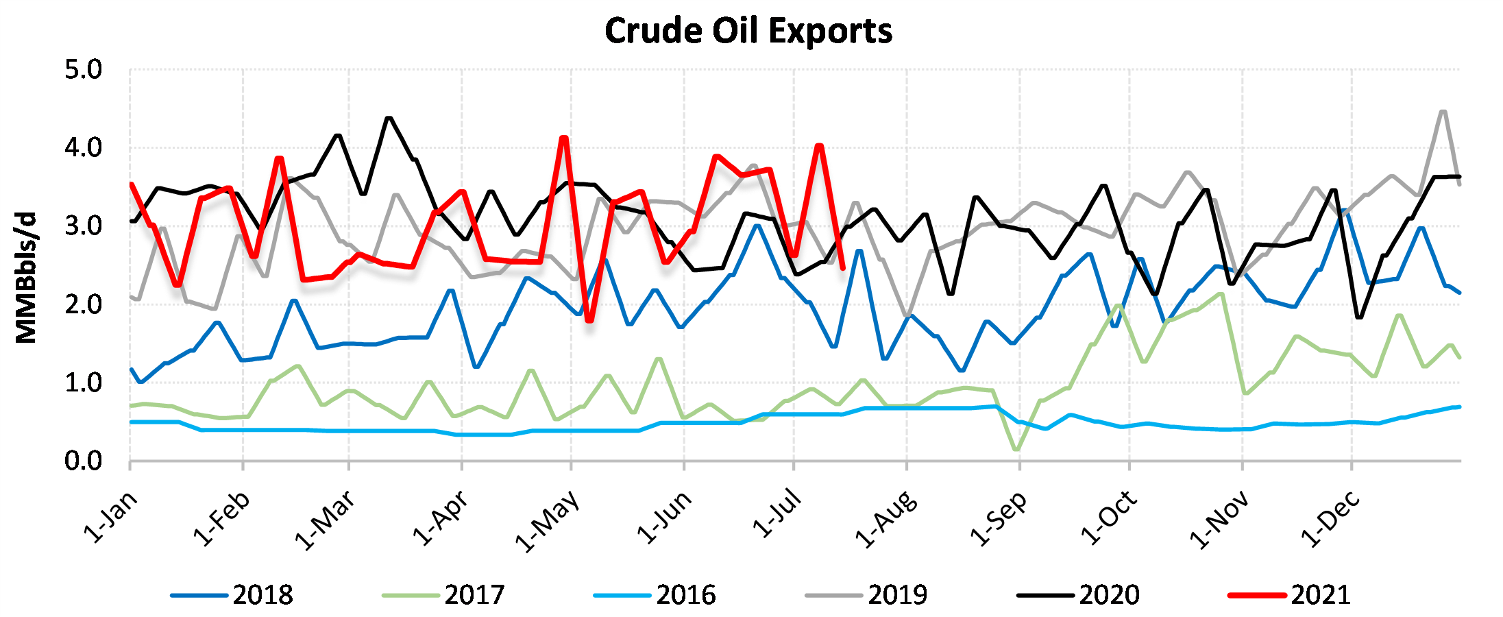 EIA reported a build of 2107 MBbls in U.S. crude-oil inventories for the week ending 7/16/2021. This was smaller than the average estimate of -3912 MBbls as reported by Bloomberg.
