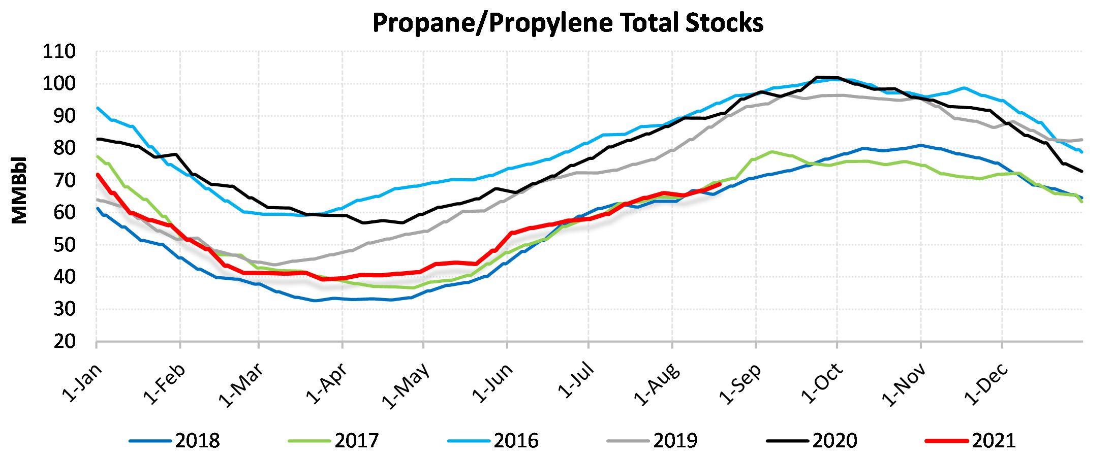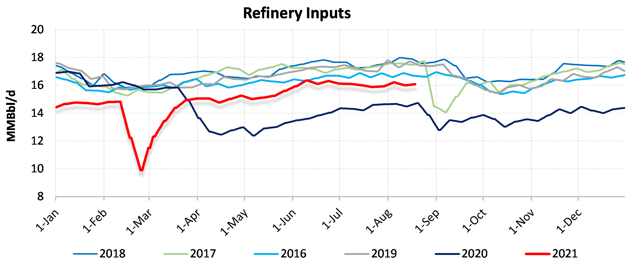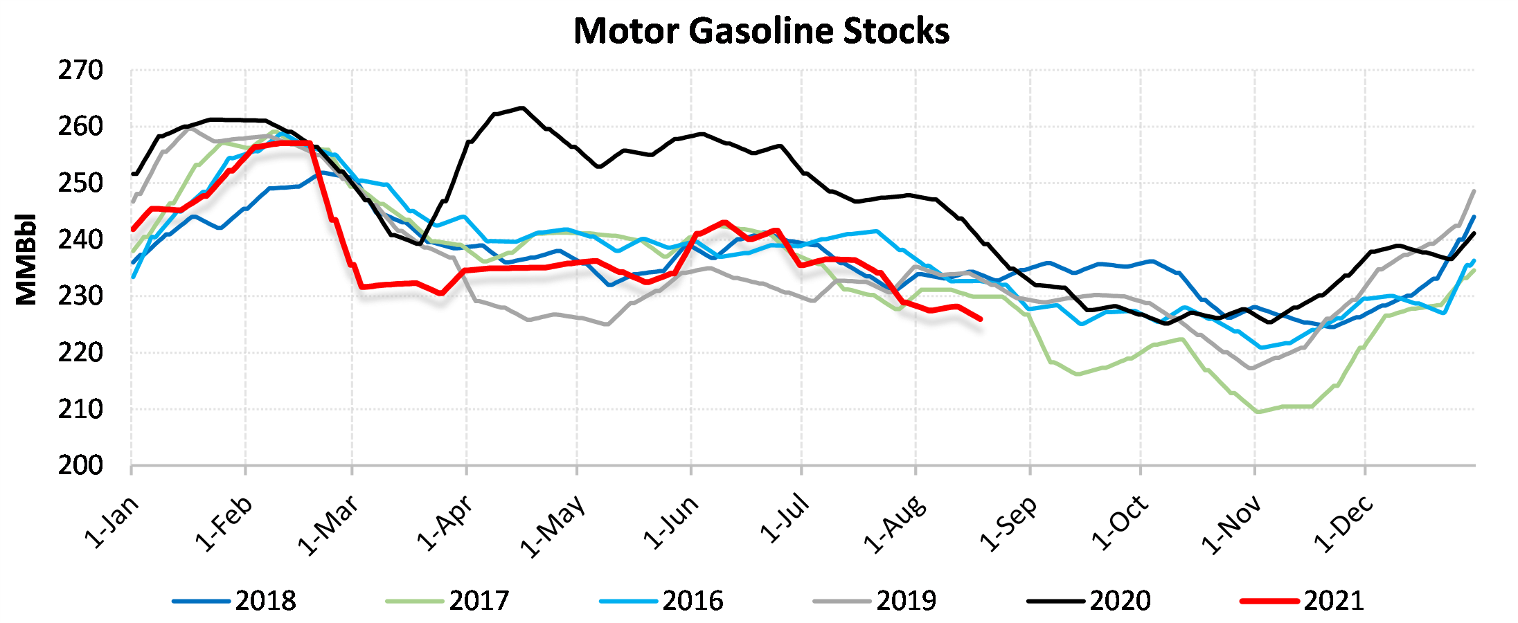 EIA reported a draw of -2980 MBbls in U.S. crude-oil inventories for the week ending 8/20/2021. This was larger than the average estimate of -2331 MBbls as reported by Bloomberg.