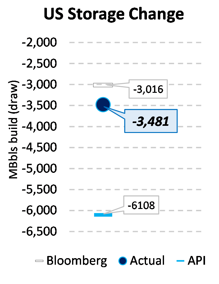 EIA reported a draw of -3481 MBbls in U.S. crude-oil inventories for the week ending 9/17/2021. This was larger than the average estimate of -3016 MBbls as reported by Bloomberg.