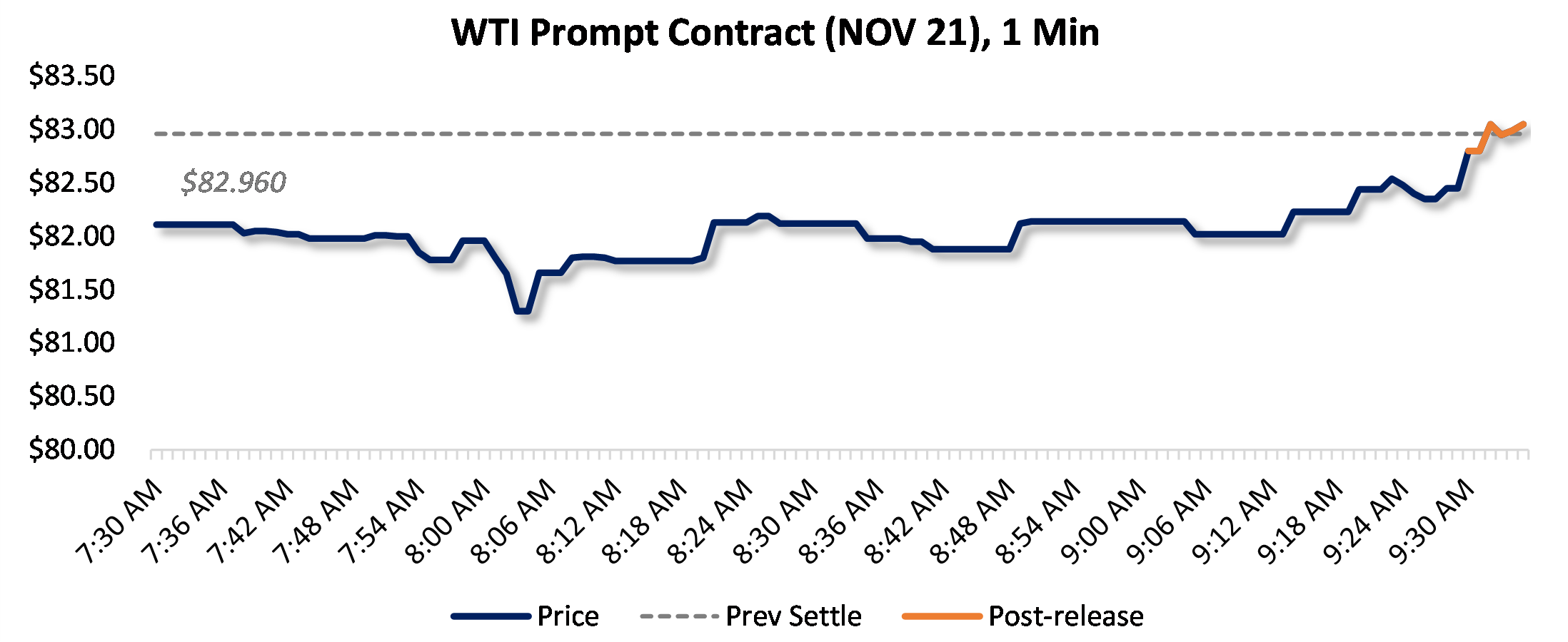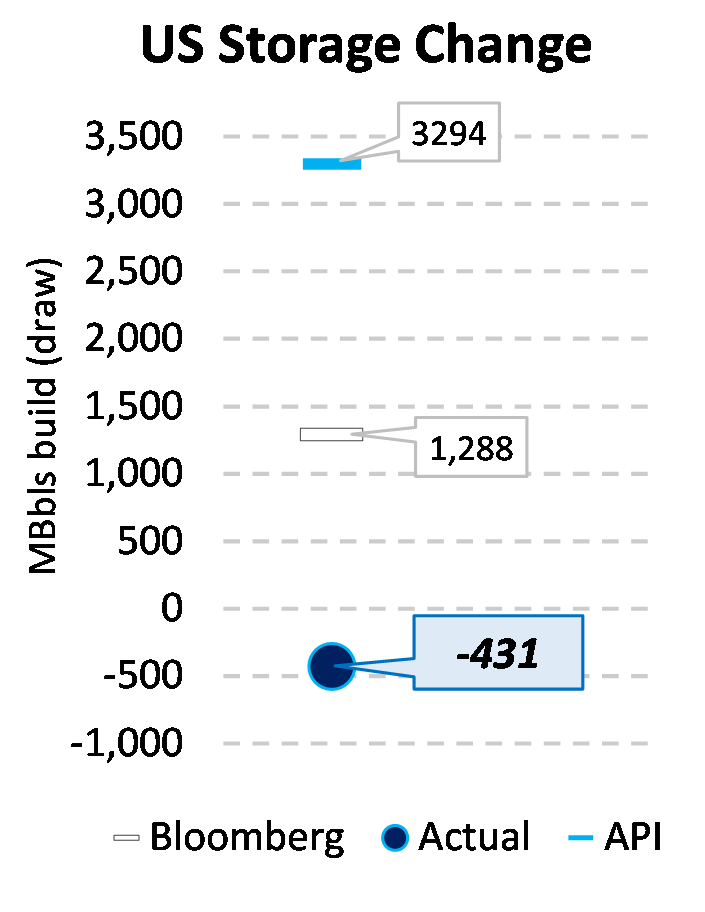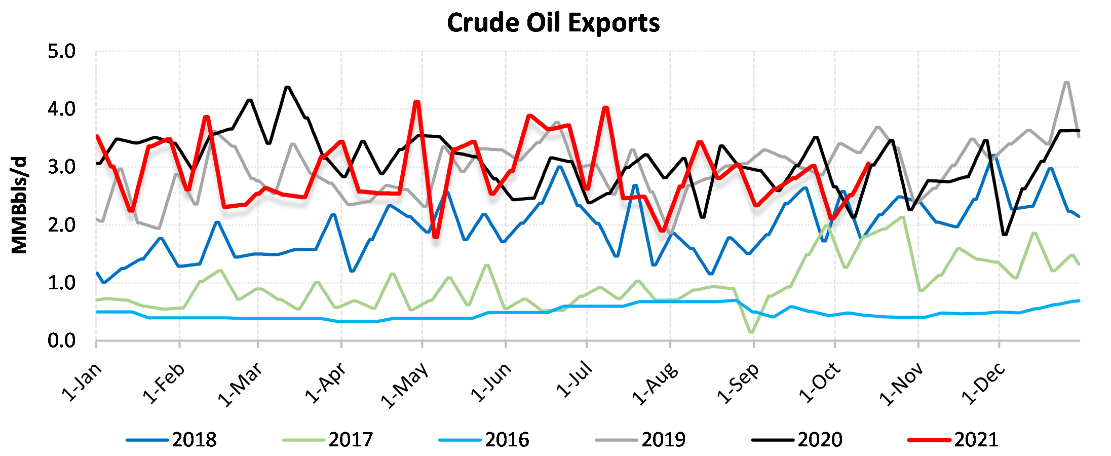 EIA reported a draw of -431 MBbls in U.S. crude-oil inventories for the week ending 10/15/2021. This was smaller than the average estimate of 1288 MBbls as reported by Bloomberg.