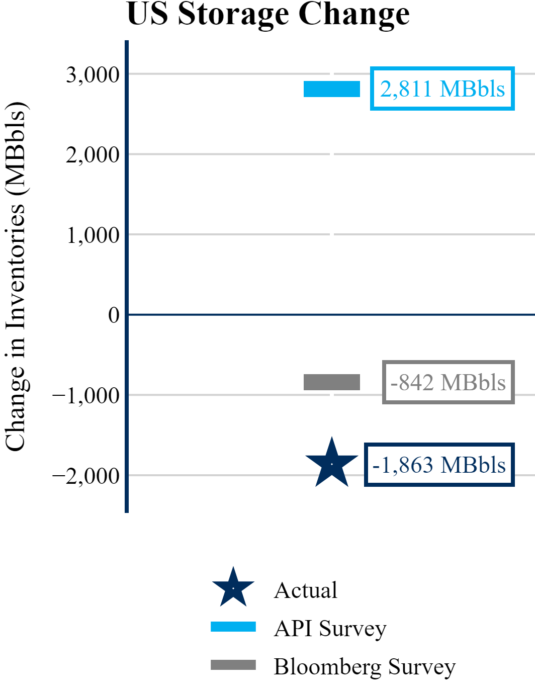 The EIA reported a draw of -1,863 MBbls in U.S. crude-oil inventories. This draw was smaller than the average estimate of 2,811 MBbls as reported by Bloomberg.