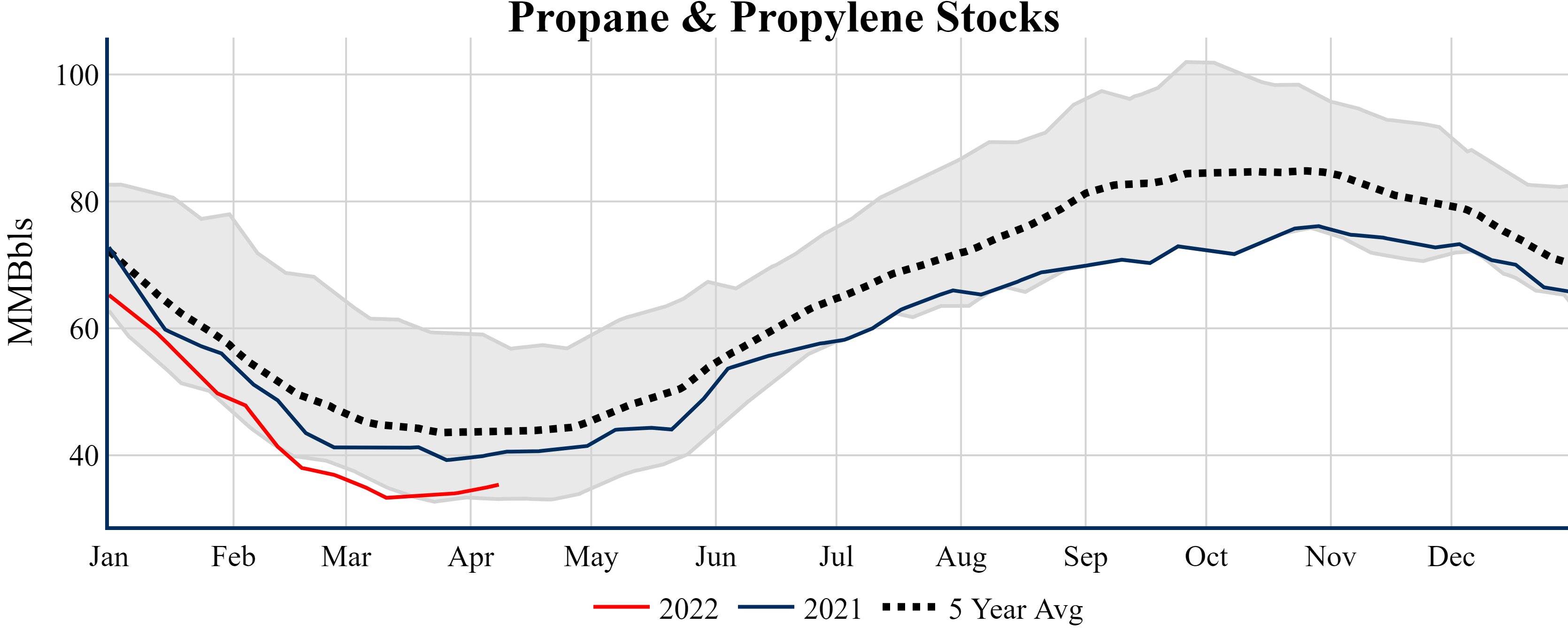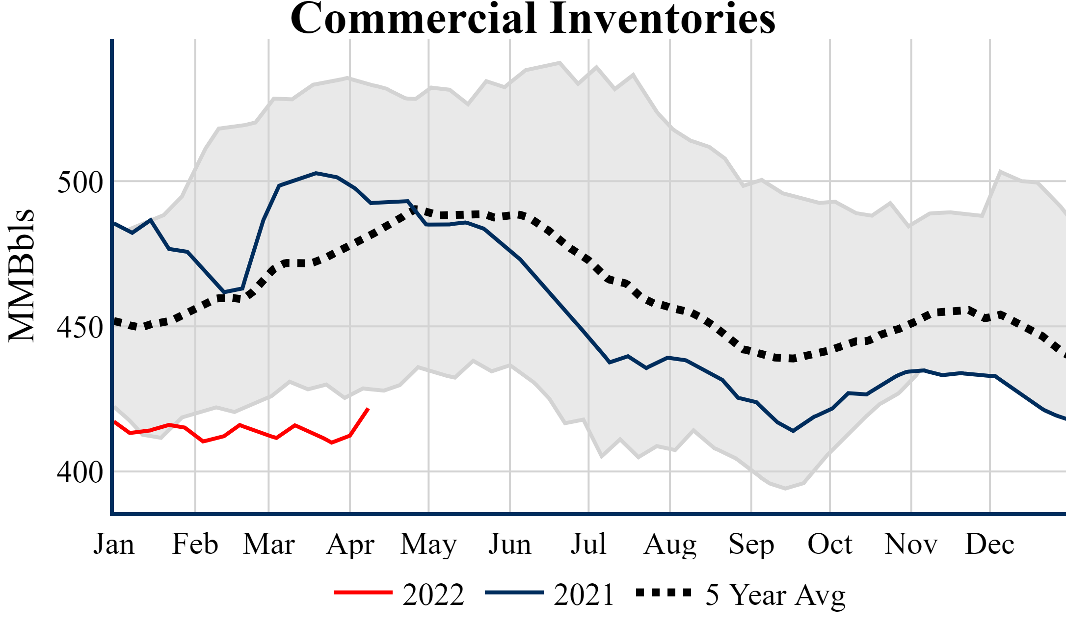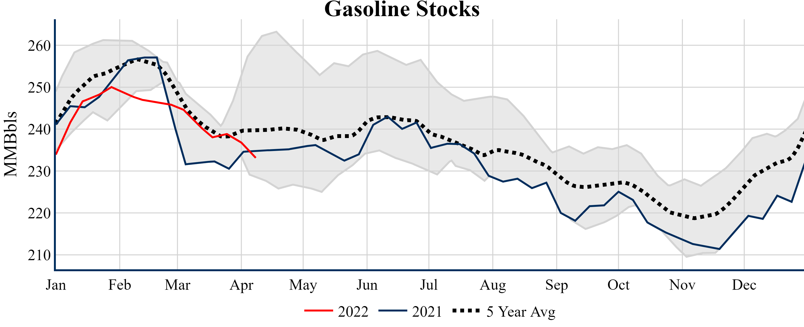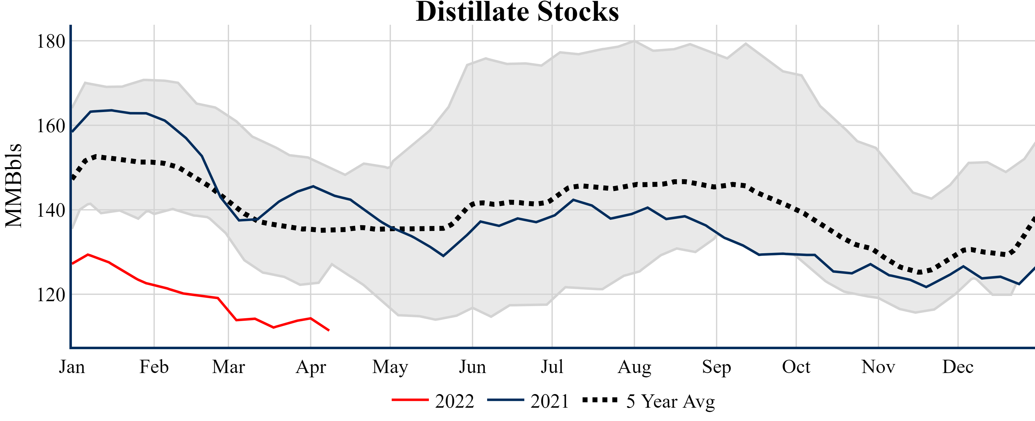 Inventories for the U.S. are now at a deficit of 71.50 MMBbls (-14.5%) to last year, and a deficit of 59.50 MMBbls (-12.4%) to the five-year average.