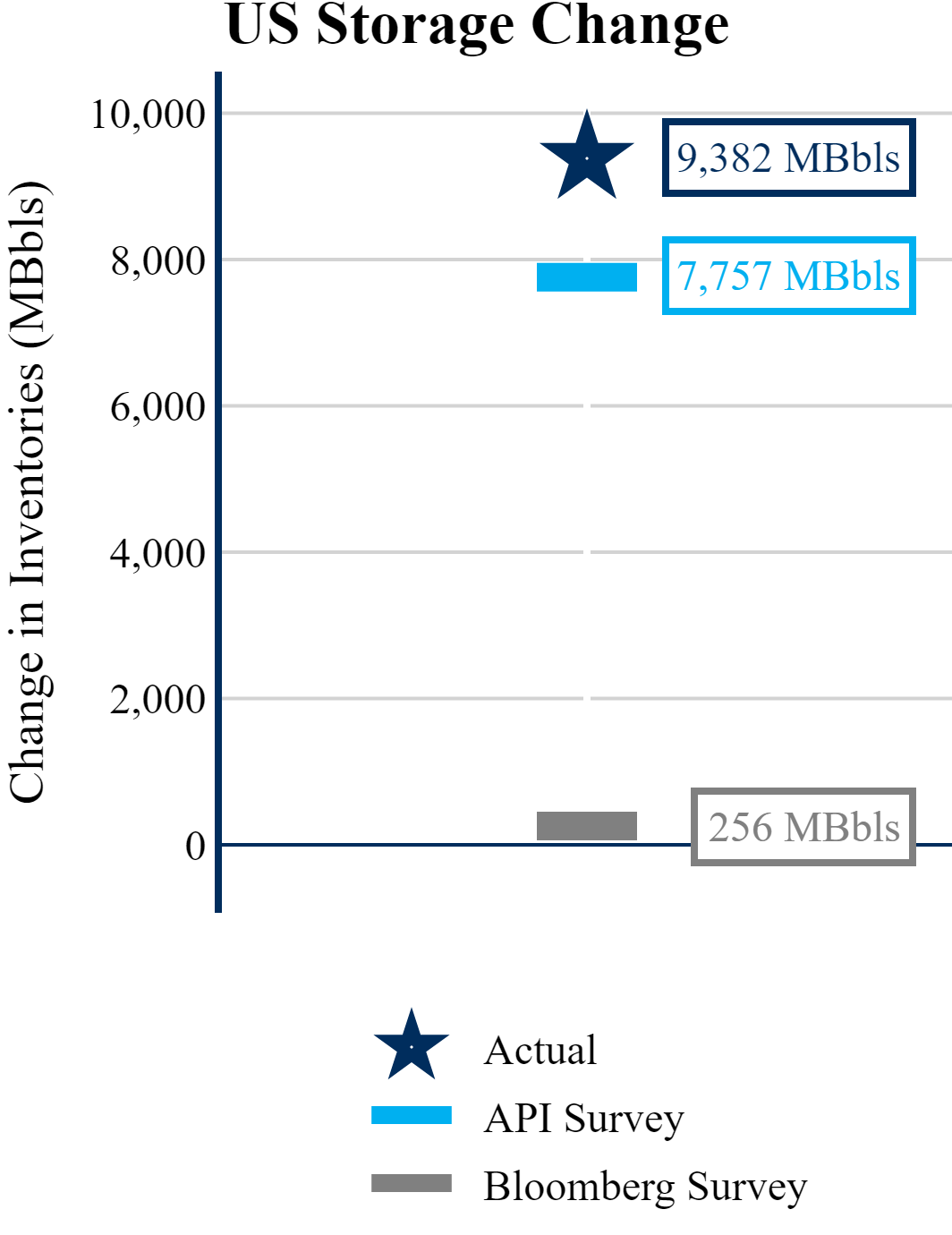 The EIA reported a build of 9,382 MBbls in U.S. crude-oil inventories. This build was larger than the average estimate of 256 MBbls as reported by Bloomberg.