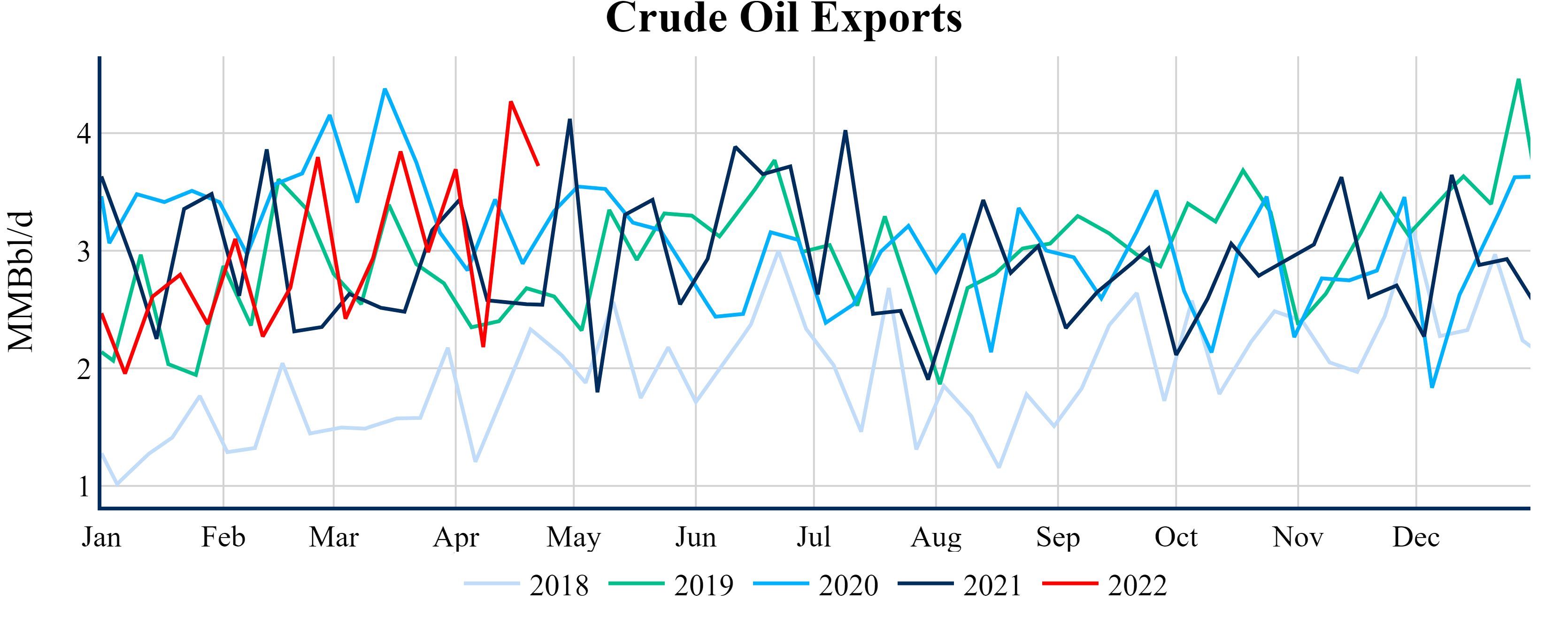 Inventories for the U.S. are now at a deficit of 78.70 MMBbls (-16.0%) to last year, and a deficit of 73.90 MMBbls (-15.1%) to the five-year average.
