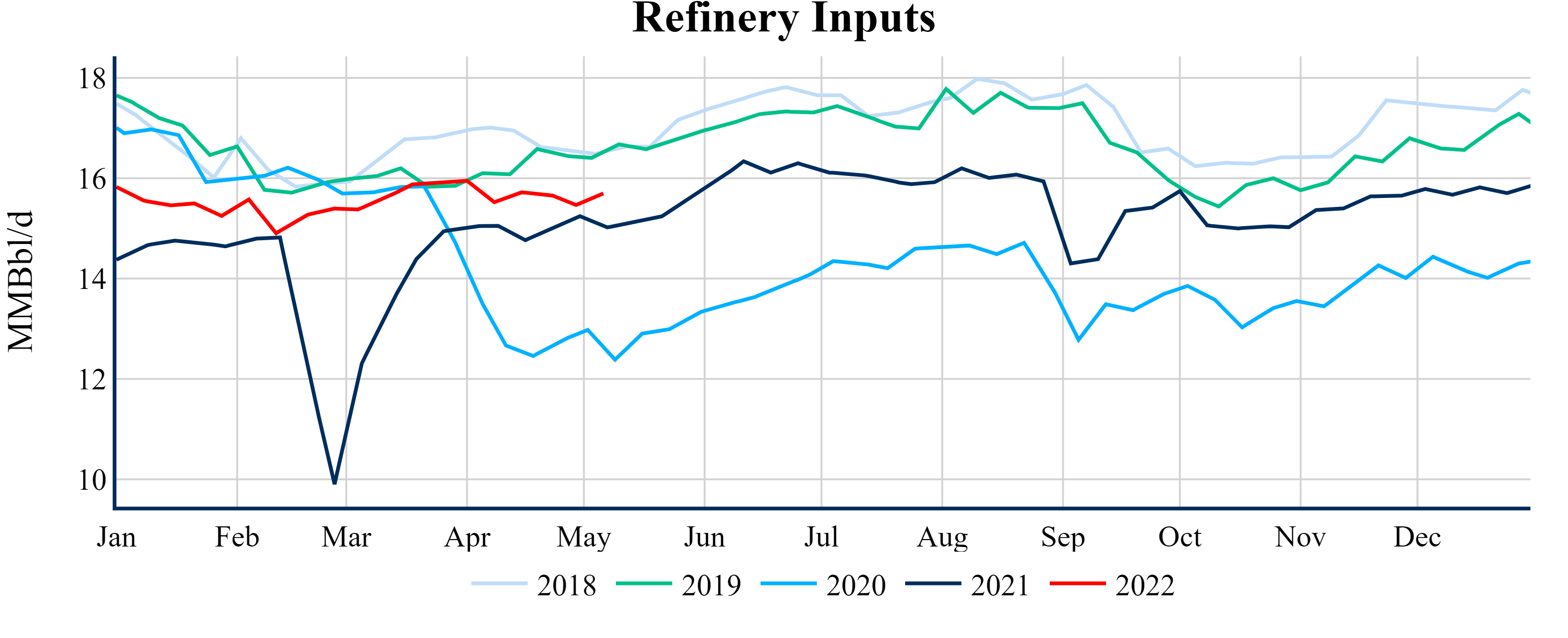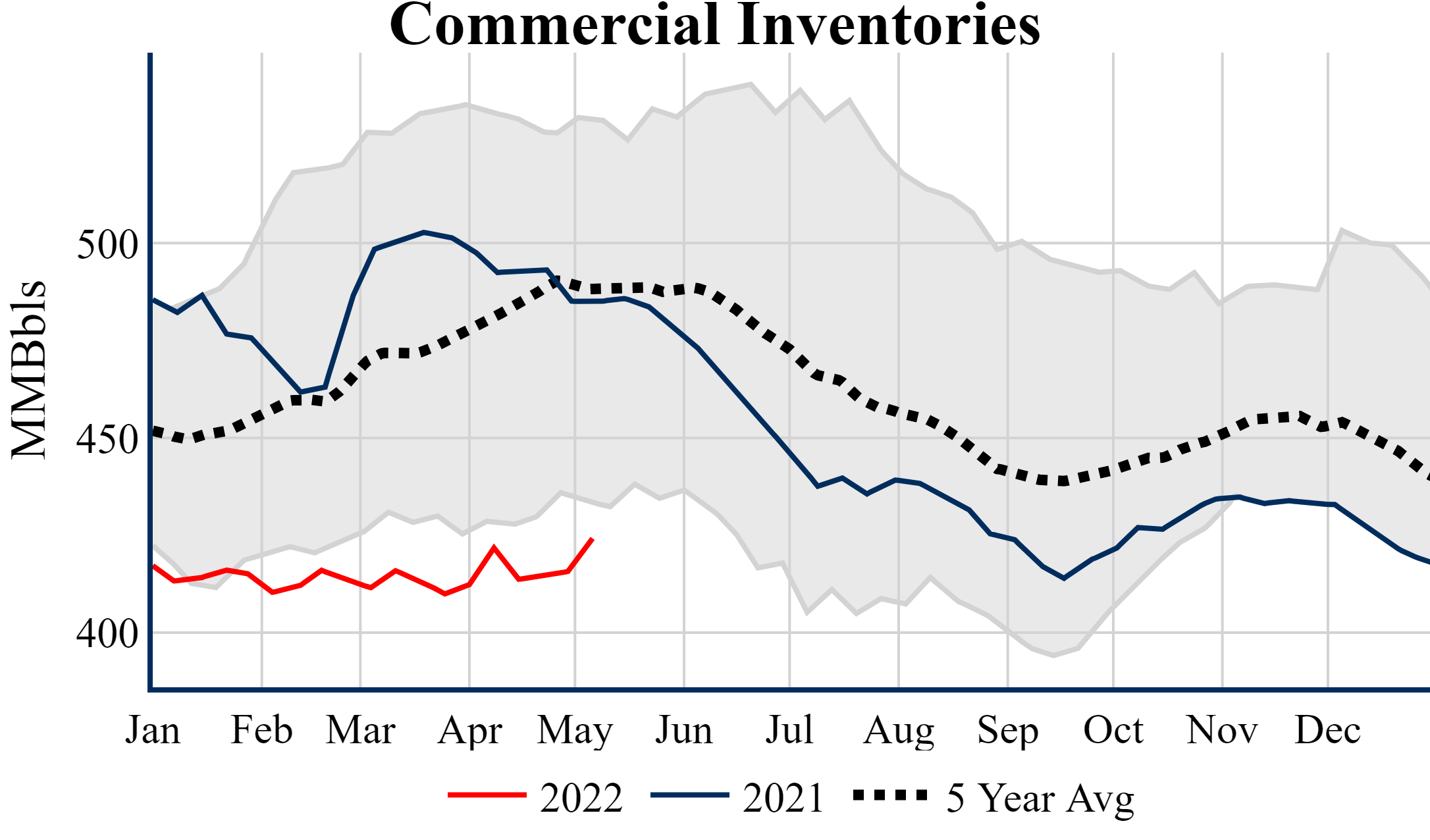 Inventories for the U.S. are now at a deficit of 60.50 MMBbls (-12.5%) to last year, and a deficit of 64.00 MMBbls (-13.1%) to the five-year average.
