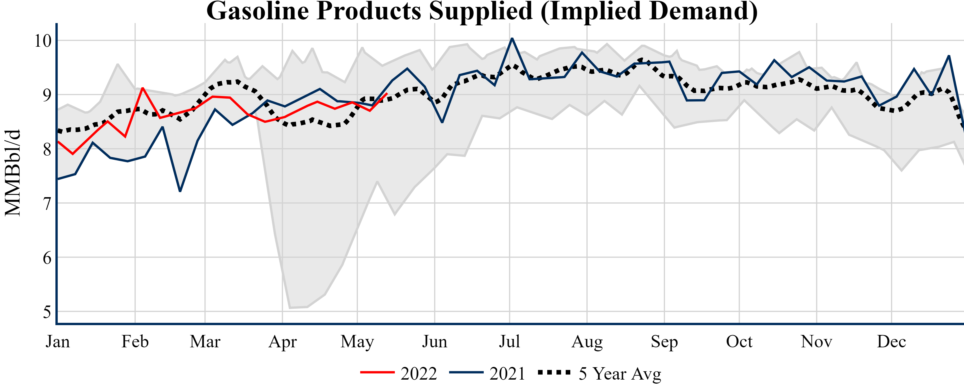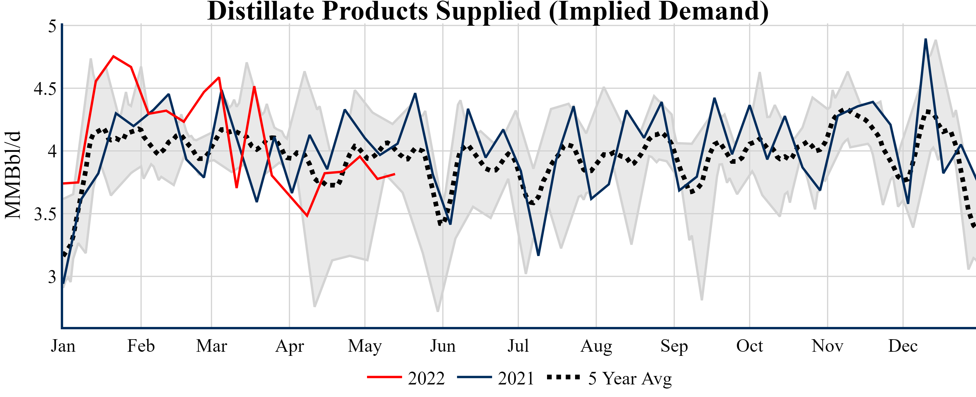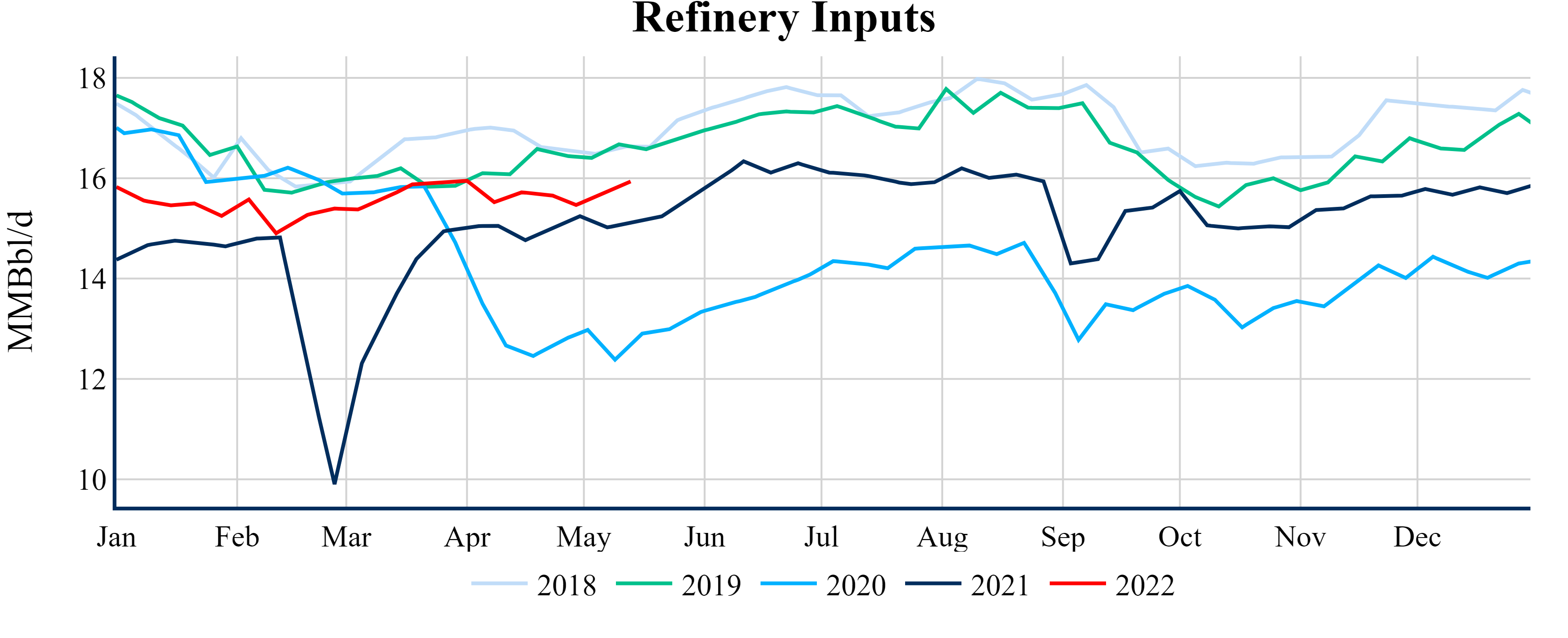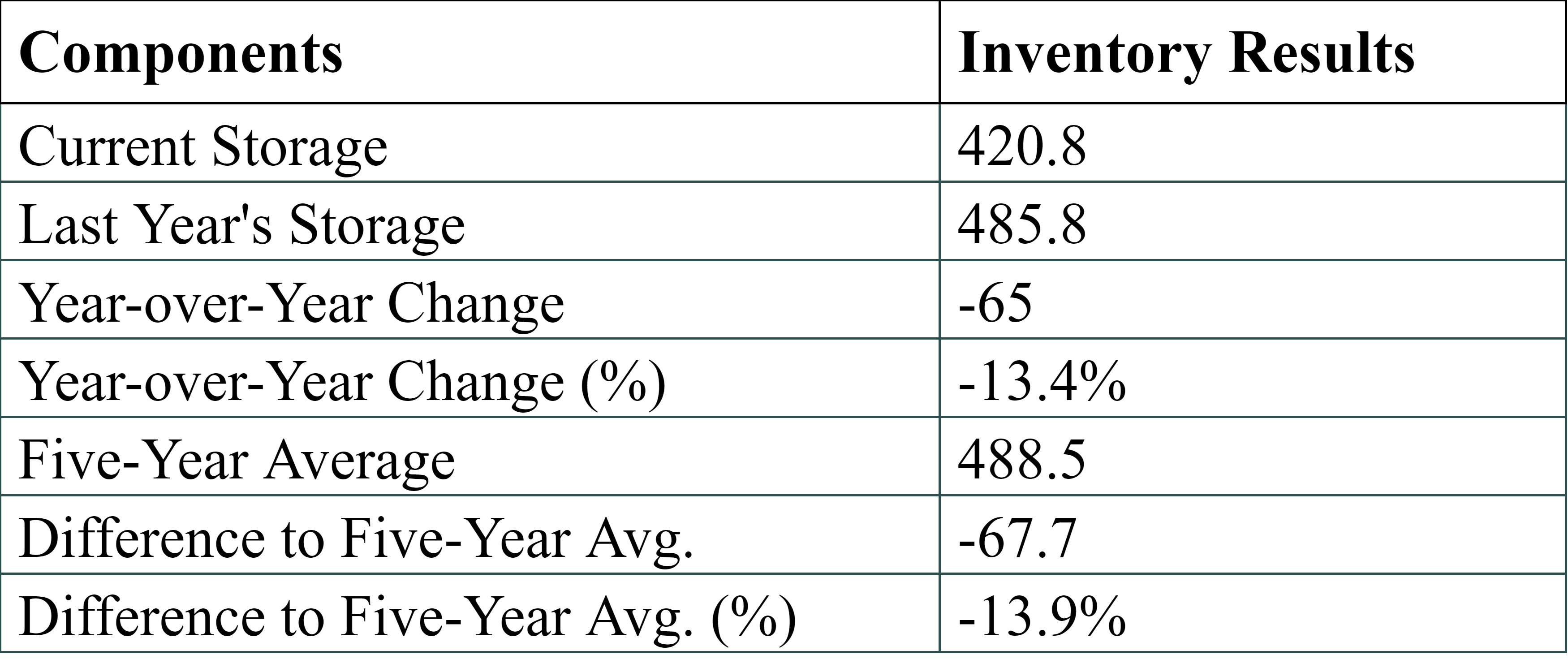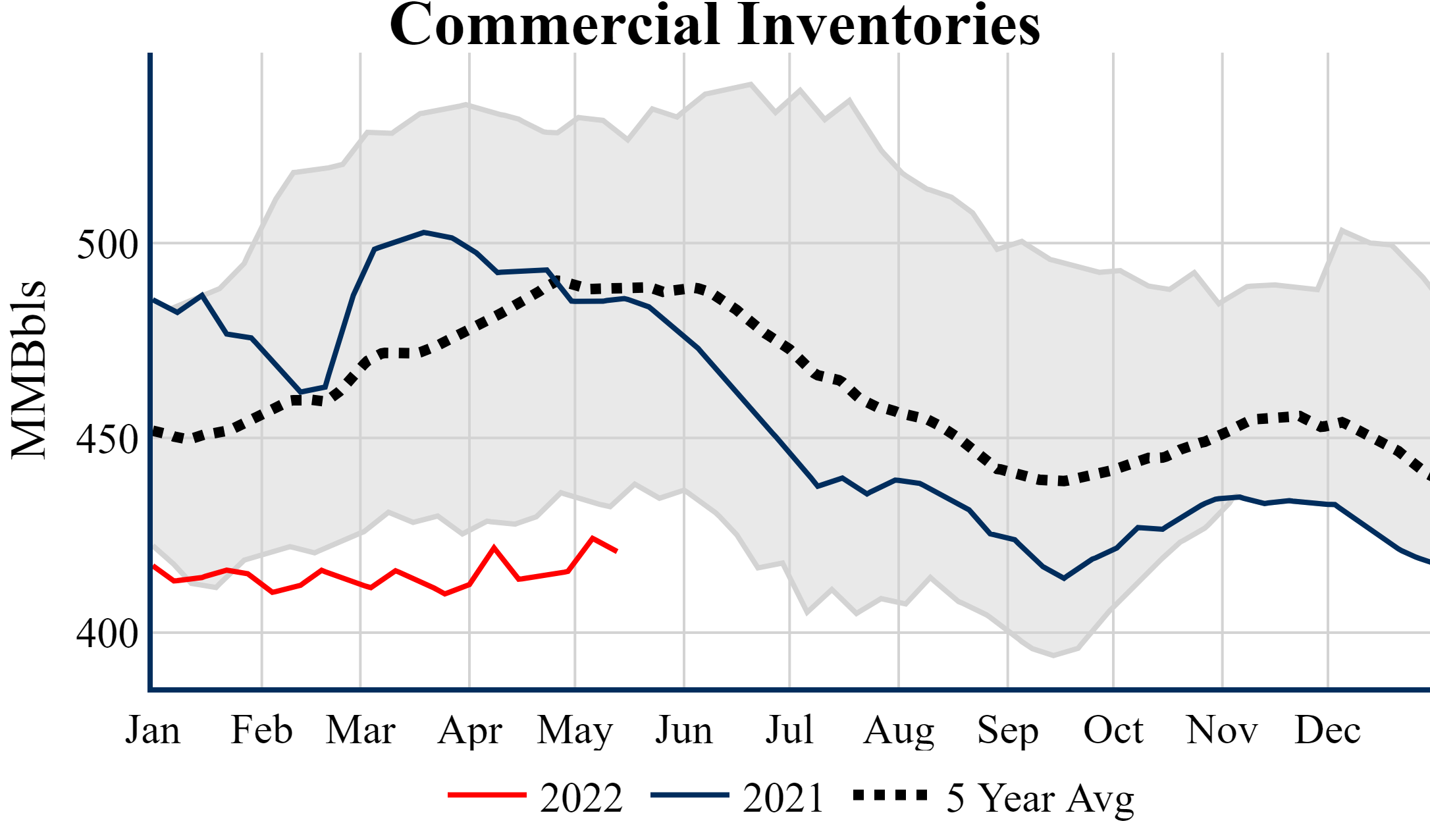 Inventories for the U.S. are now at a deficit of 65.00 MMBbls (-13.4%) to last year, and a deficit of 67.70 MMBbls (-13.9%) to the five-year average.