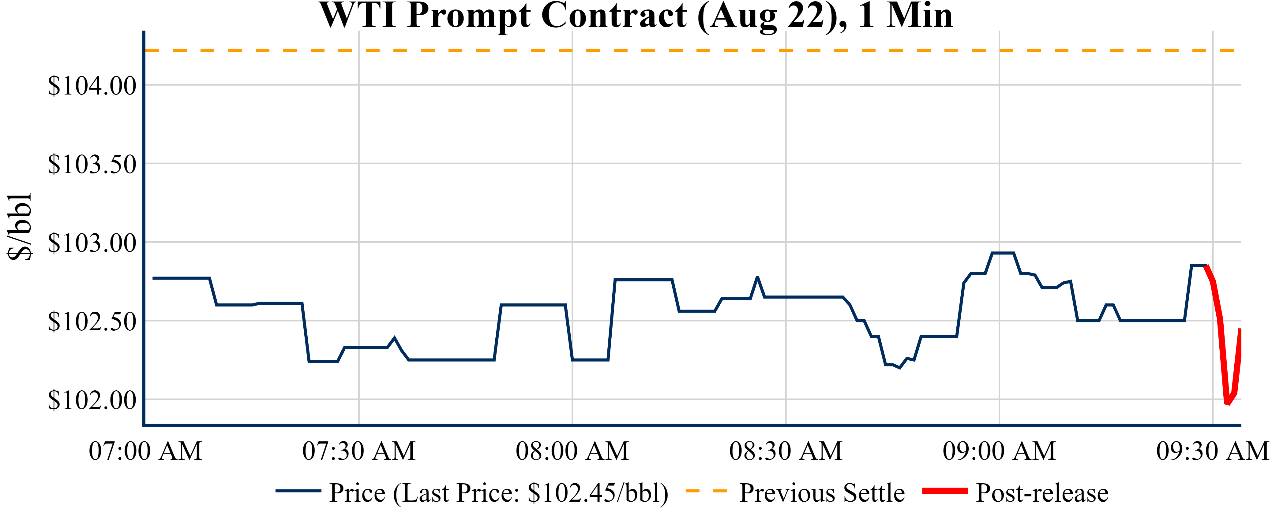 Prices were down in the five minutes following the announcement, to $102.45 from $102.75 just before 09:30 AM.