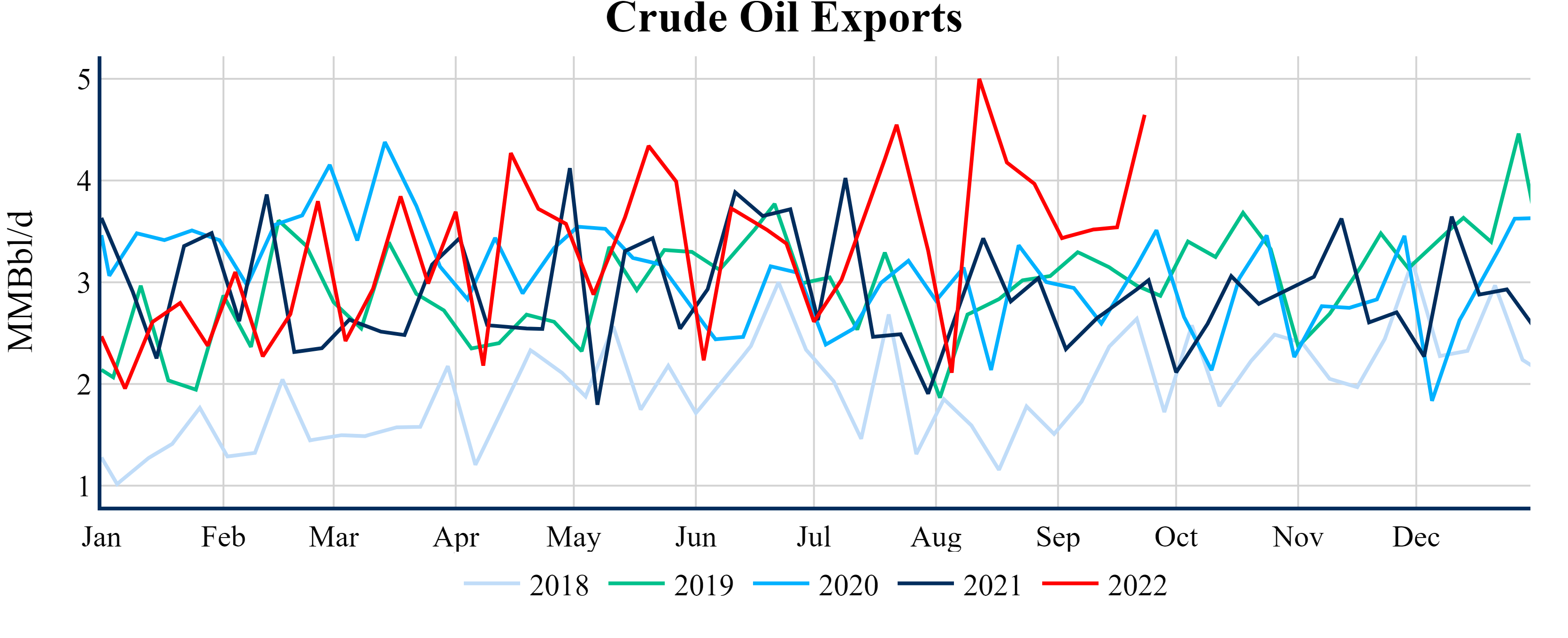 Inventories for the U.S. are now at a surplus of 12.70 MMBbls (3.0%) to last year, and a deficit of 9.50 MMBbls (-2.2%) to the five-year average.