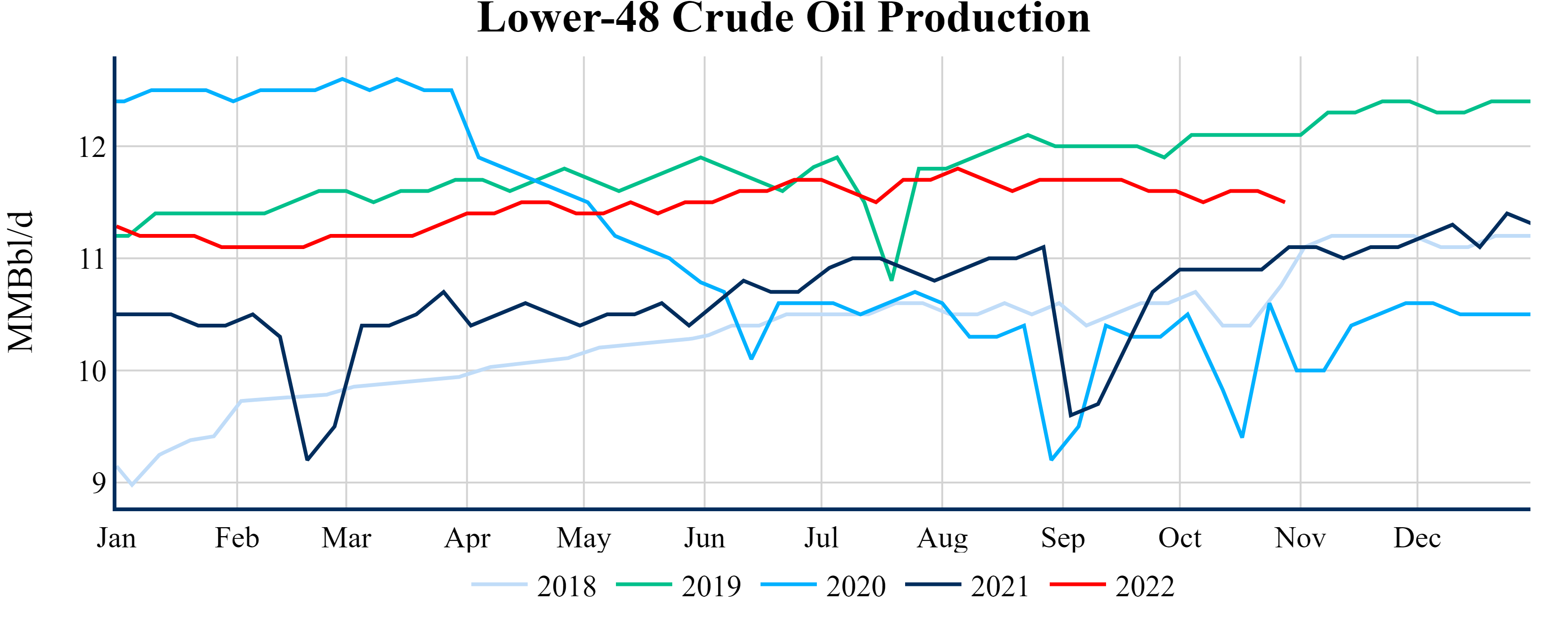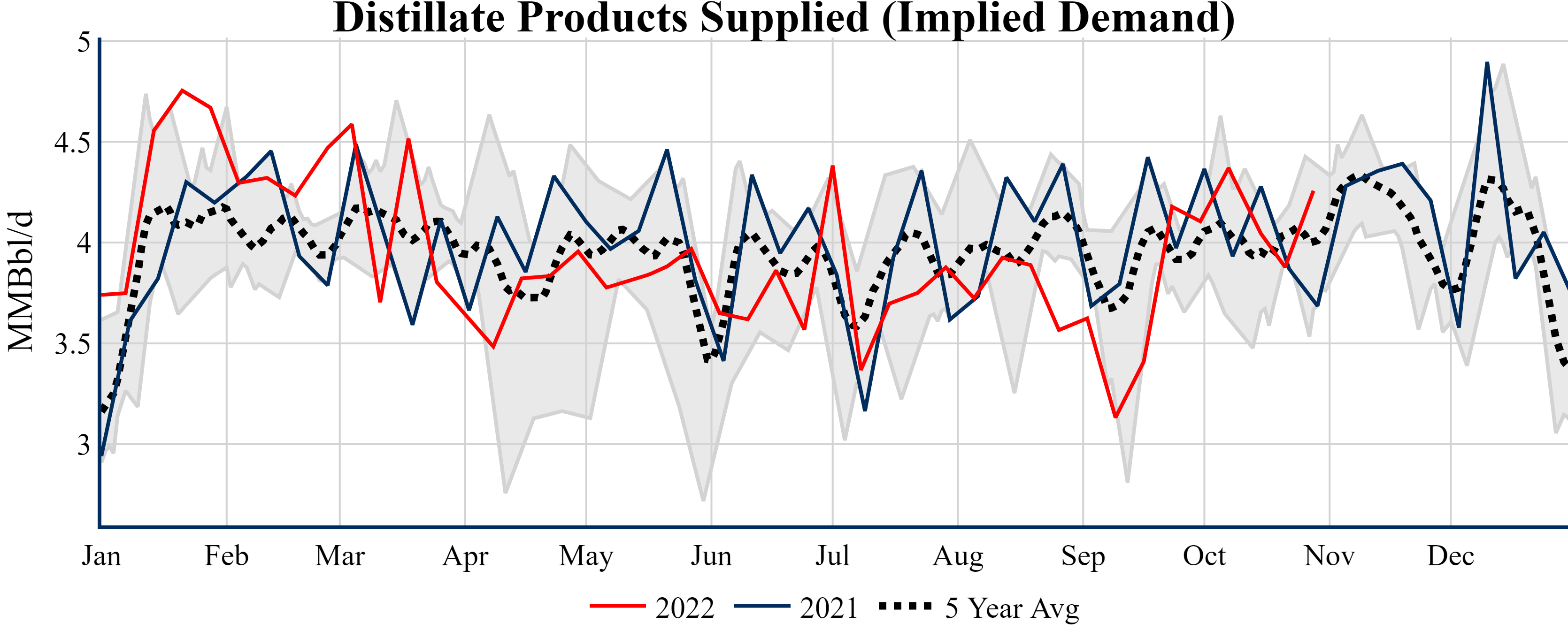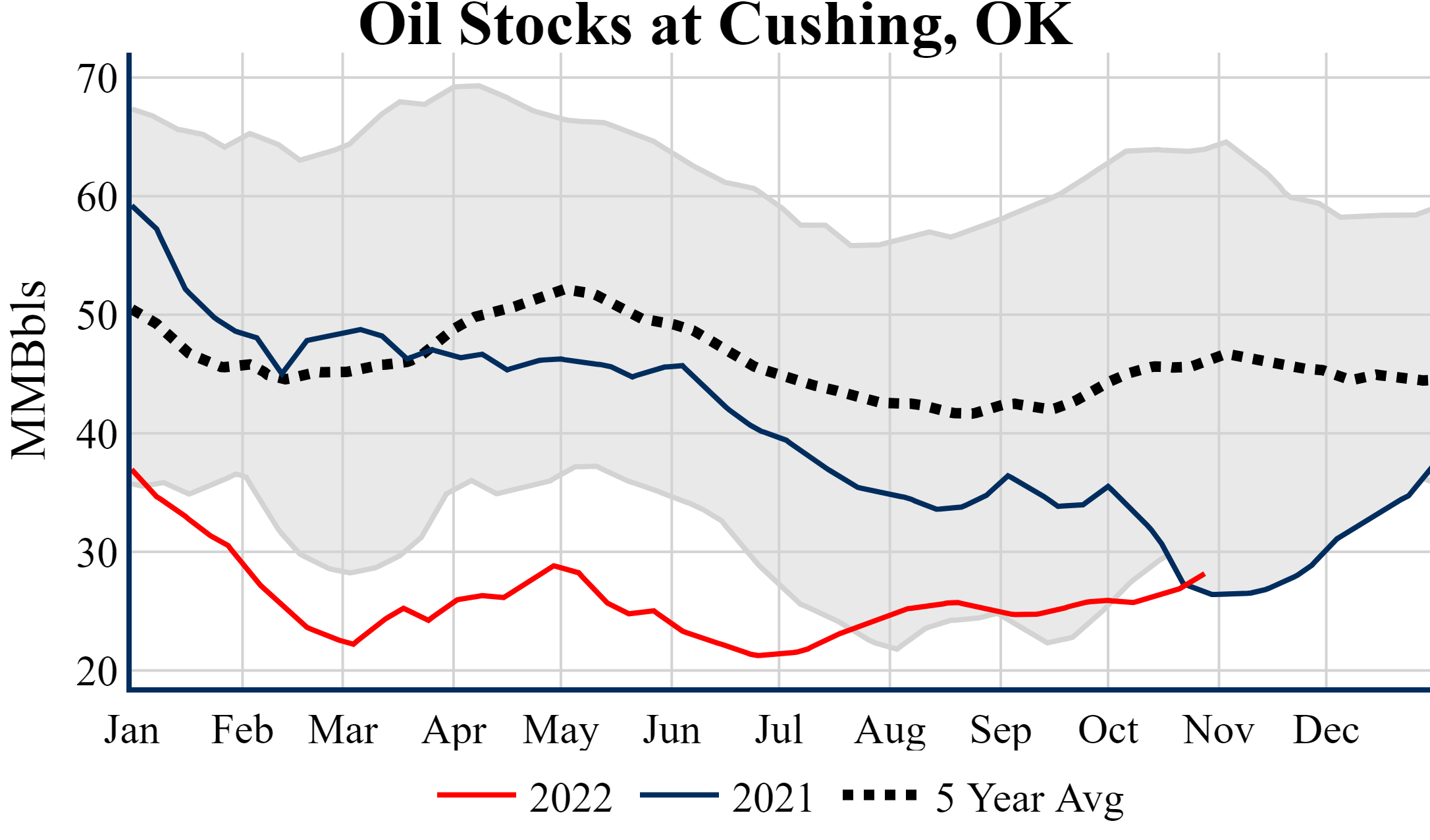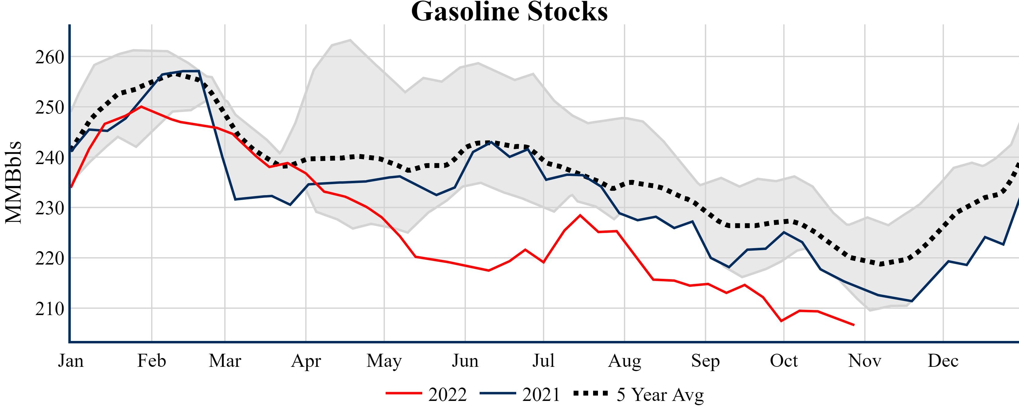 Inventories for the U.S. are now at a surplus of 3.20 MMBbls (0.7%) to last year, and a deficit of 12.50 MMBbls (-2.8%) to the five-year average.