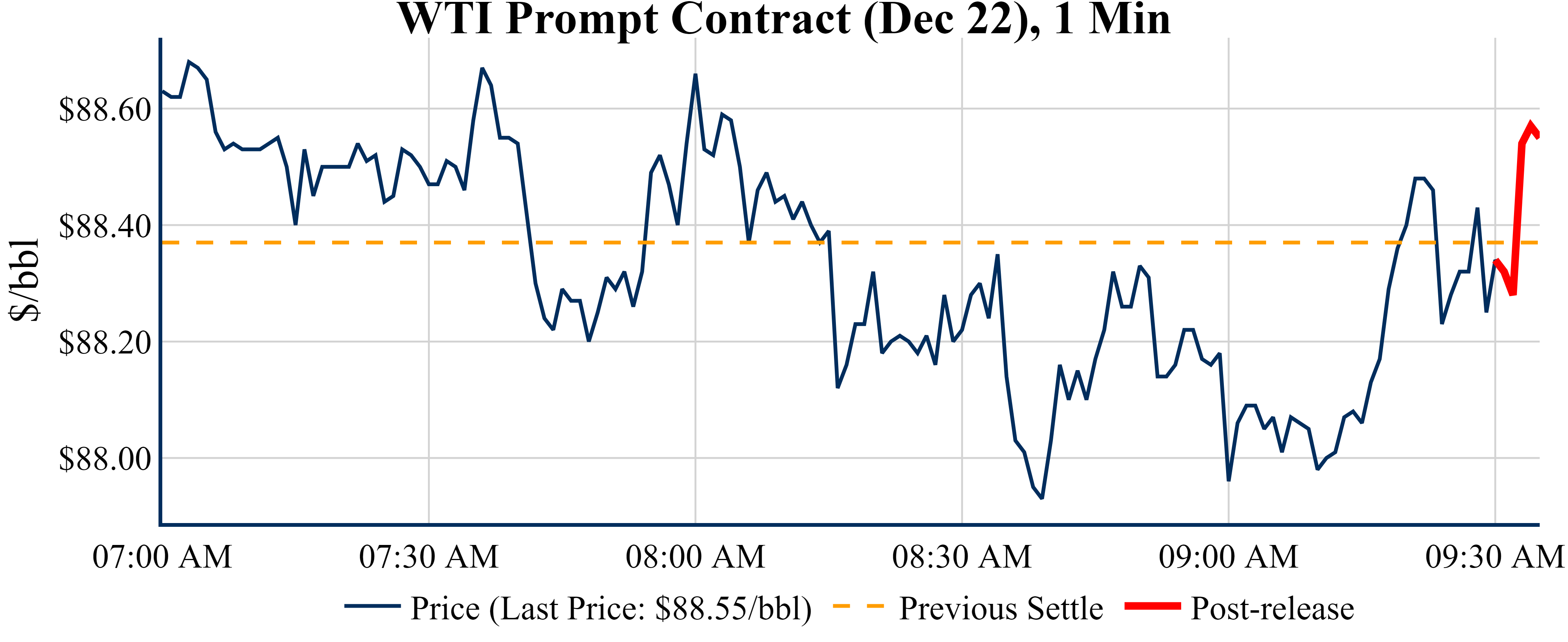 Prices were up in the five minutes following the announcement, to $88.55 from $88.34 just before 09:30 AM.