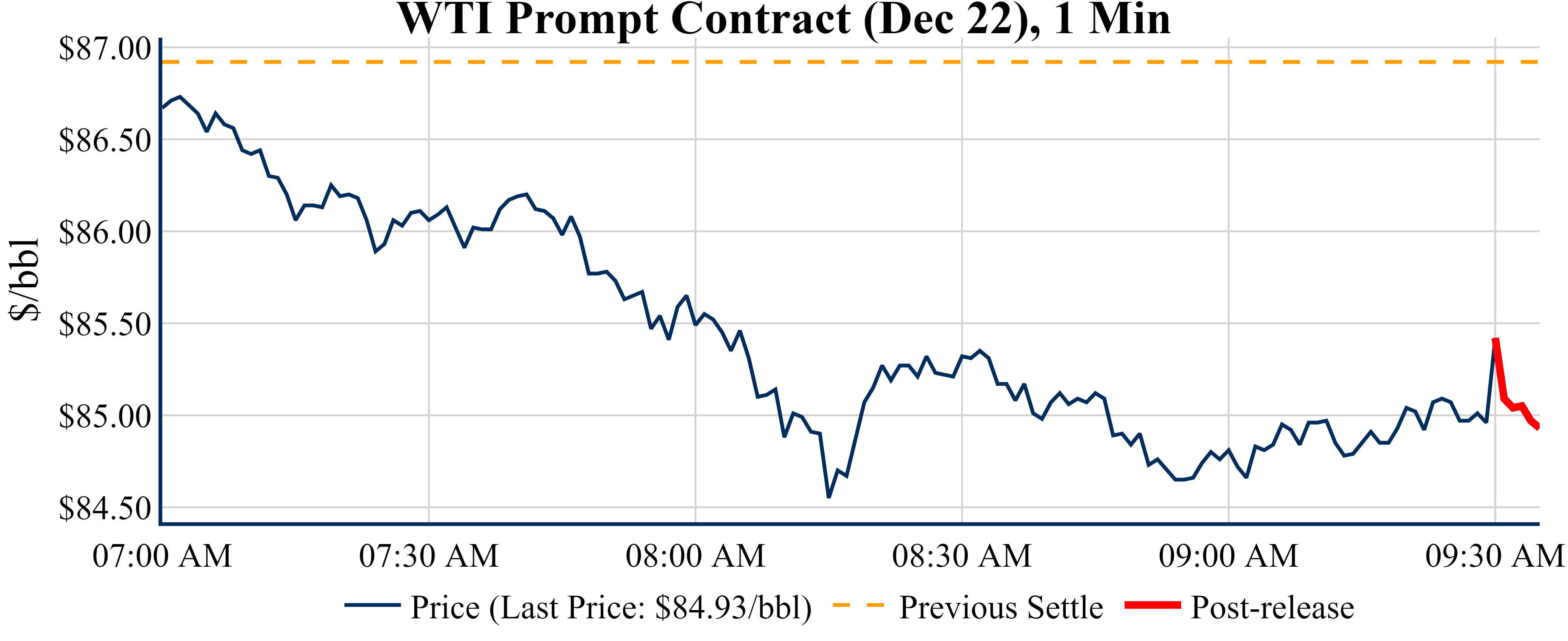 Prices were down in the five minutes following the announcement, to $84.93 from $85.42 just before 09:30 AM.