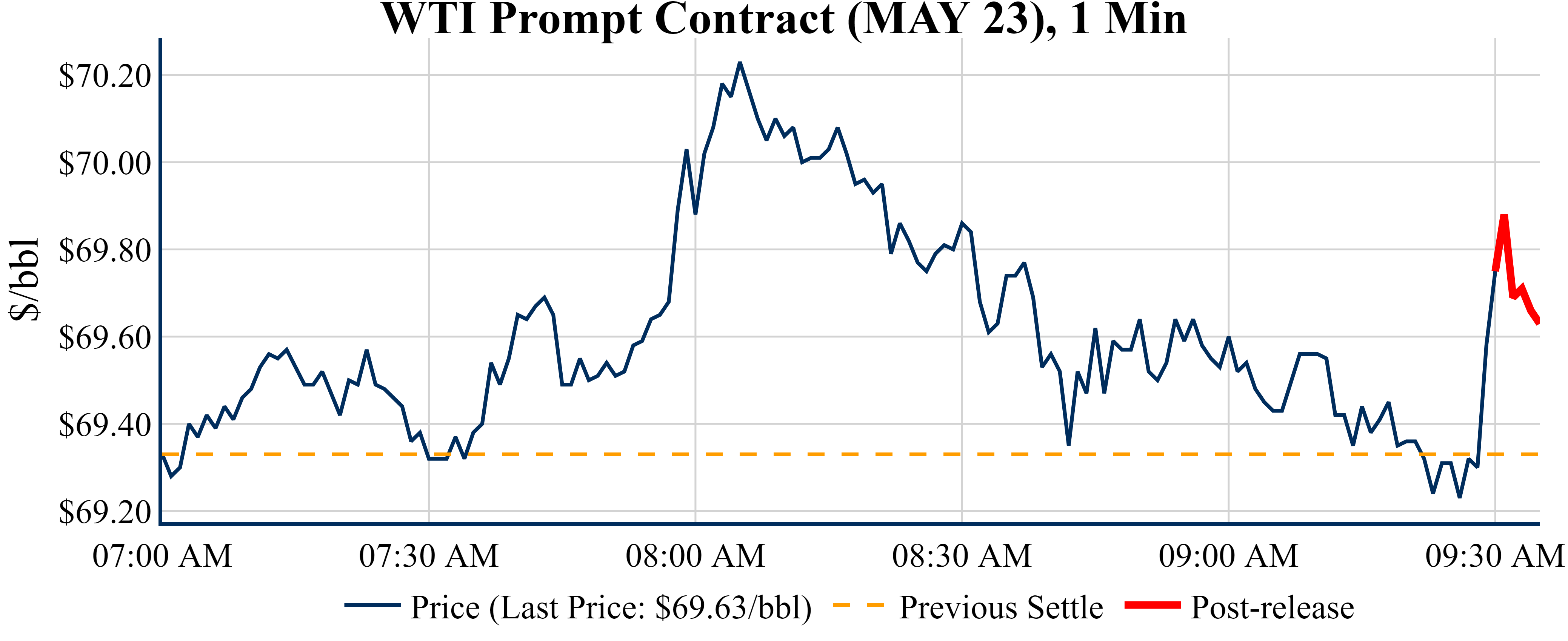 Prices were down in the five minutes following the announcement, to $69.63 from $69.75 just before 09:30 AM.