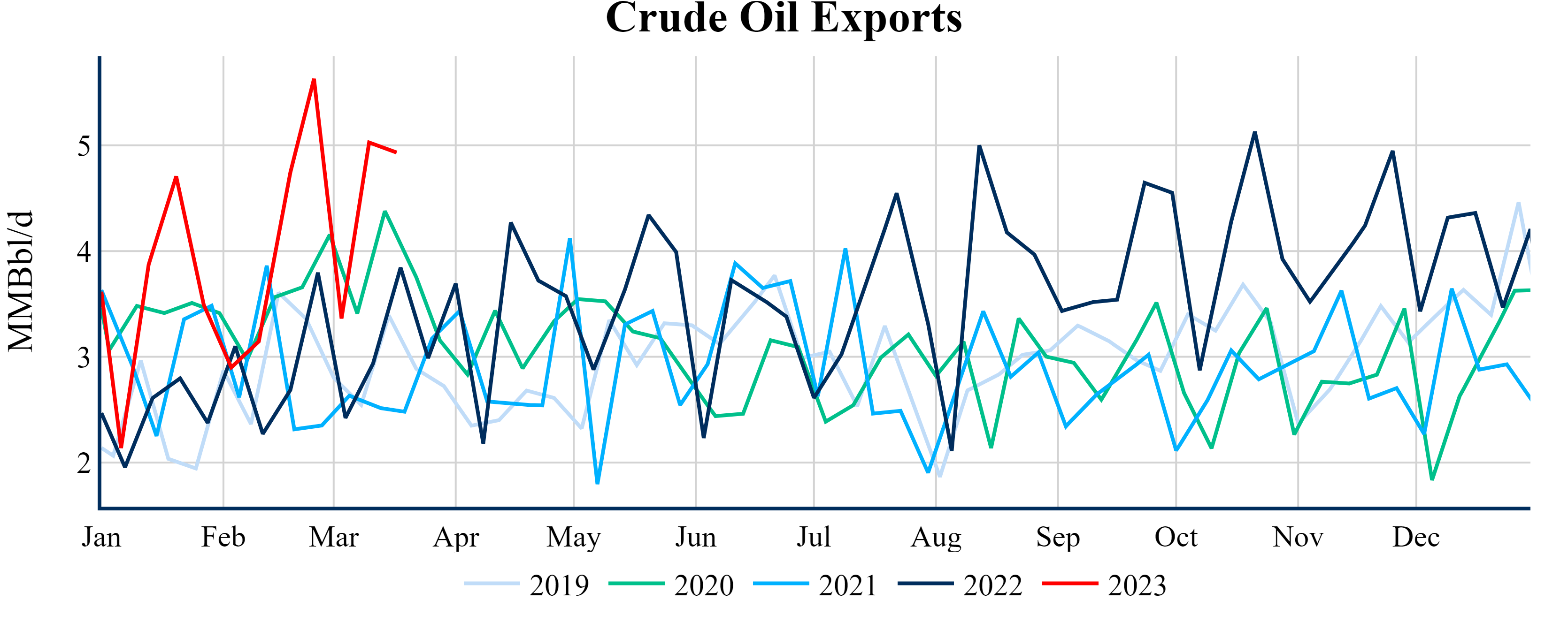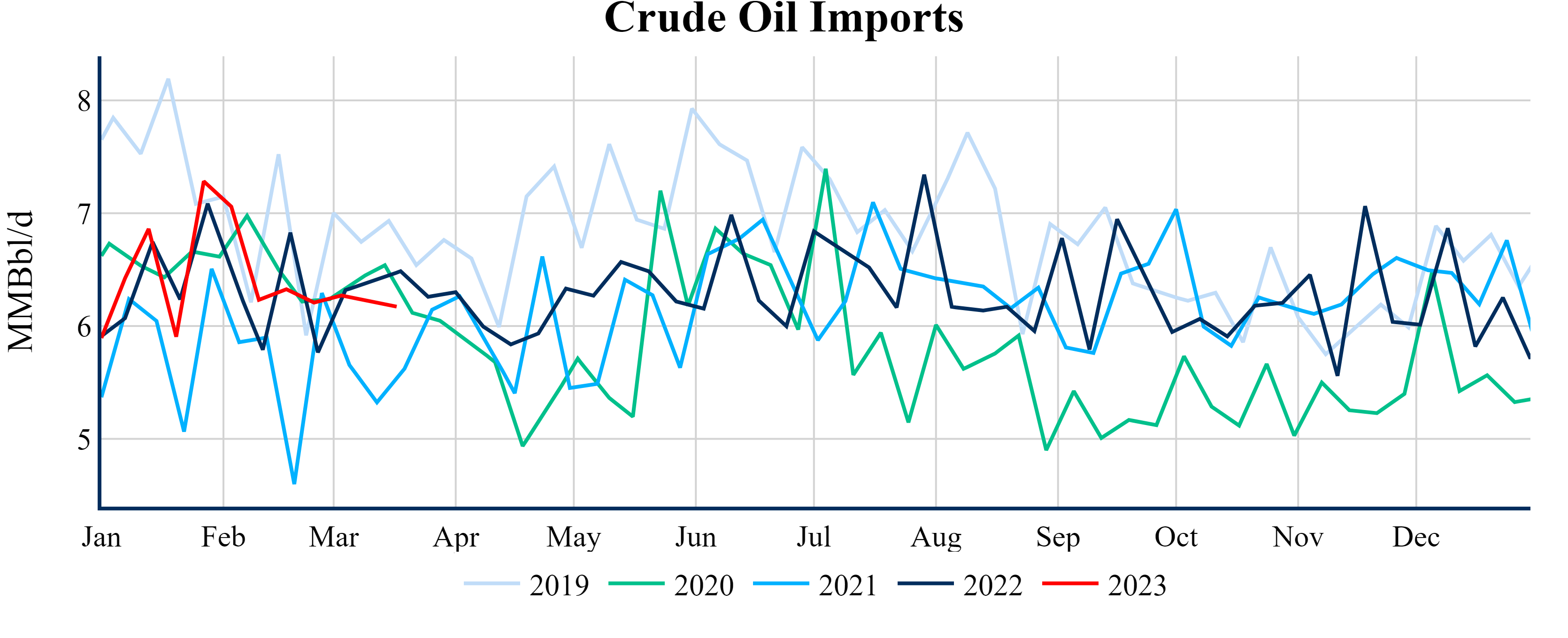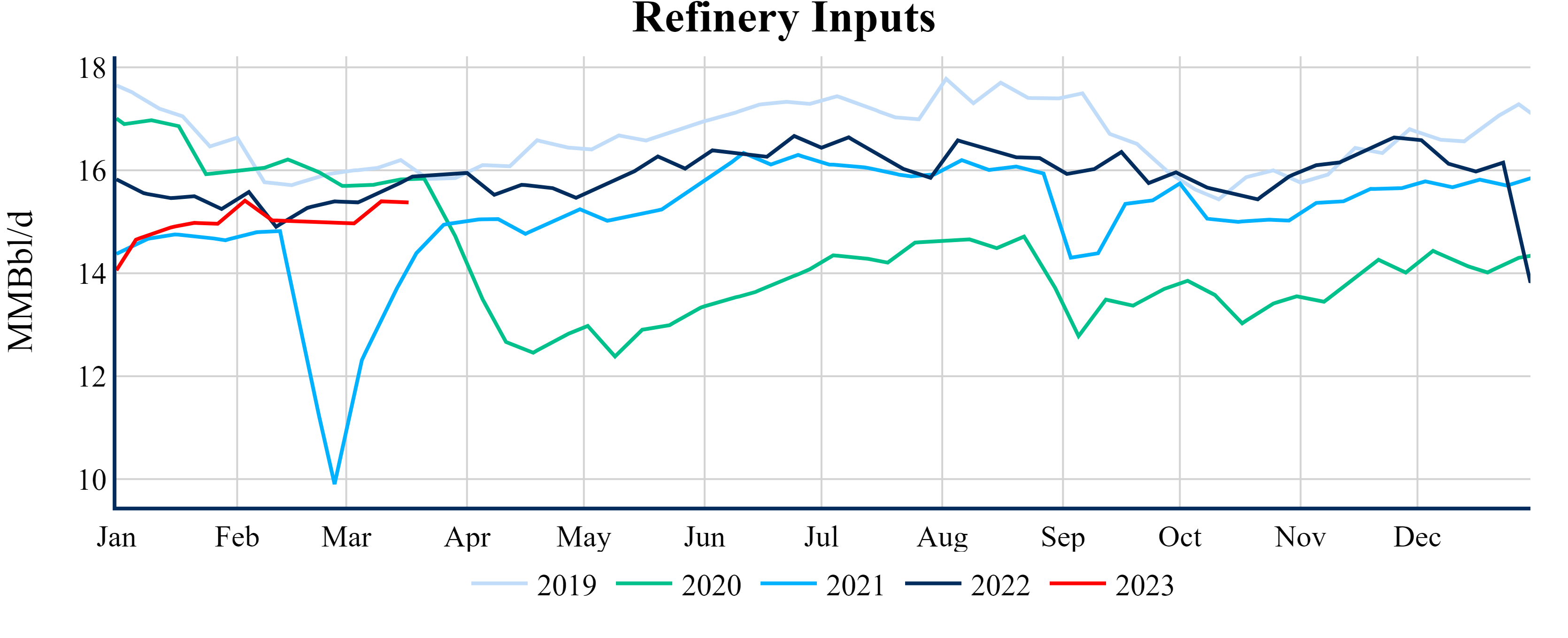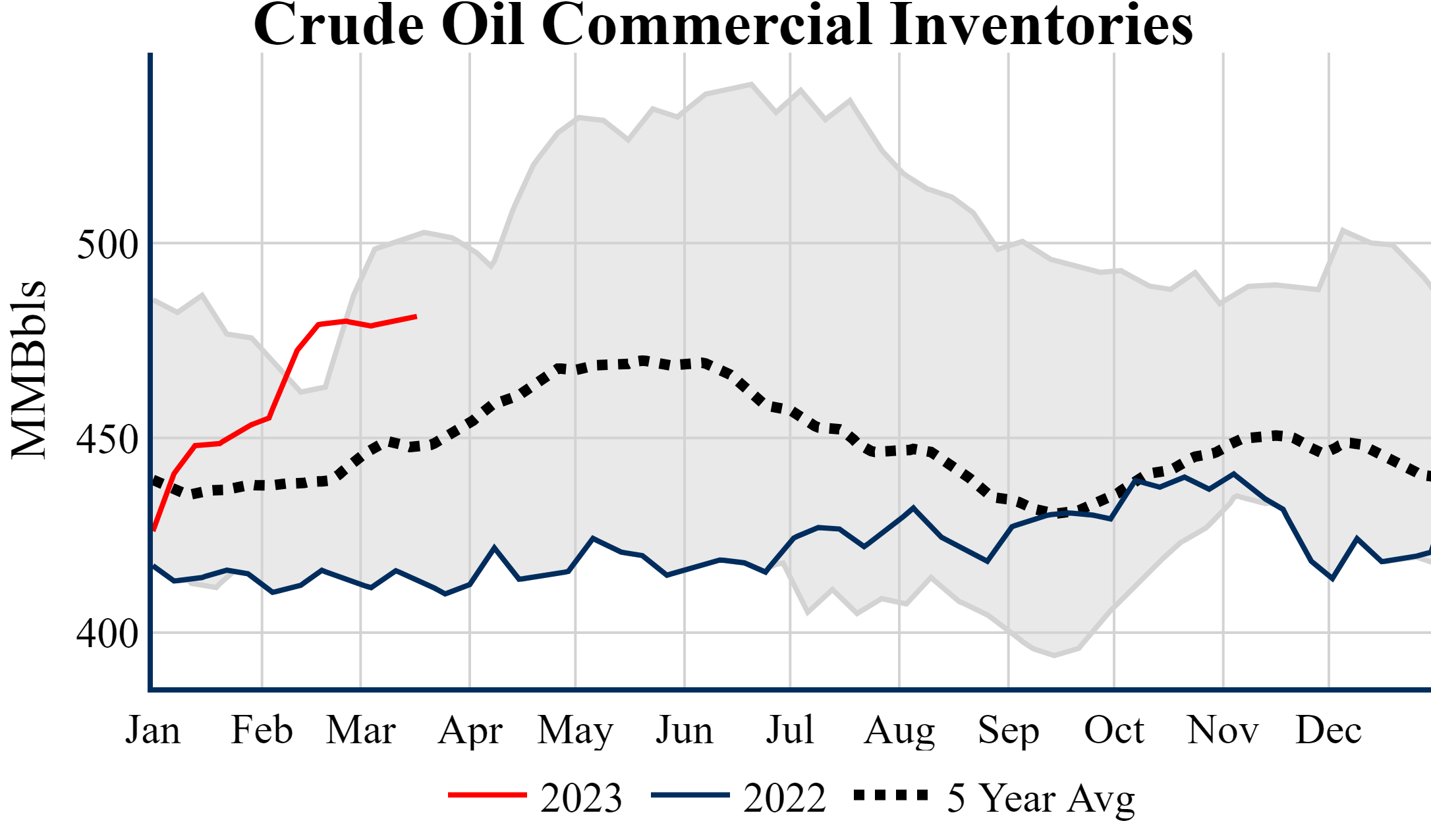 Inventories for the U.S. are now at a surplus of 67.40 MMBbls (16.3%) to last year, and a surplus of 33.30 MMBbls (7.4%) to the five-year average.