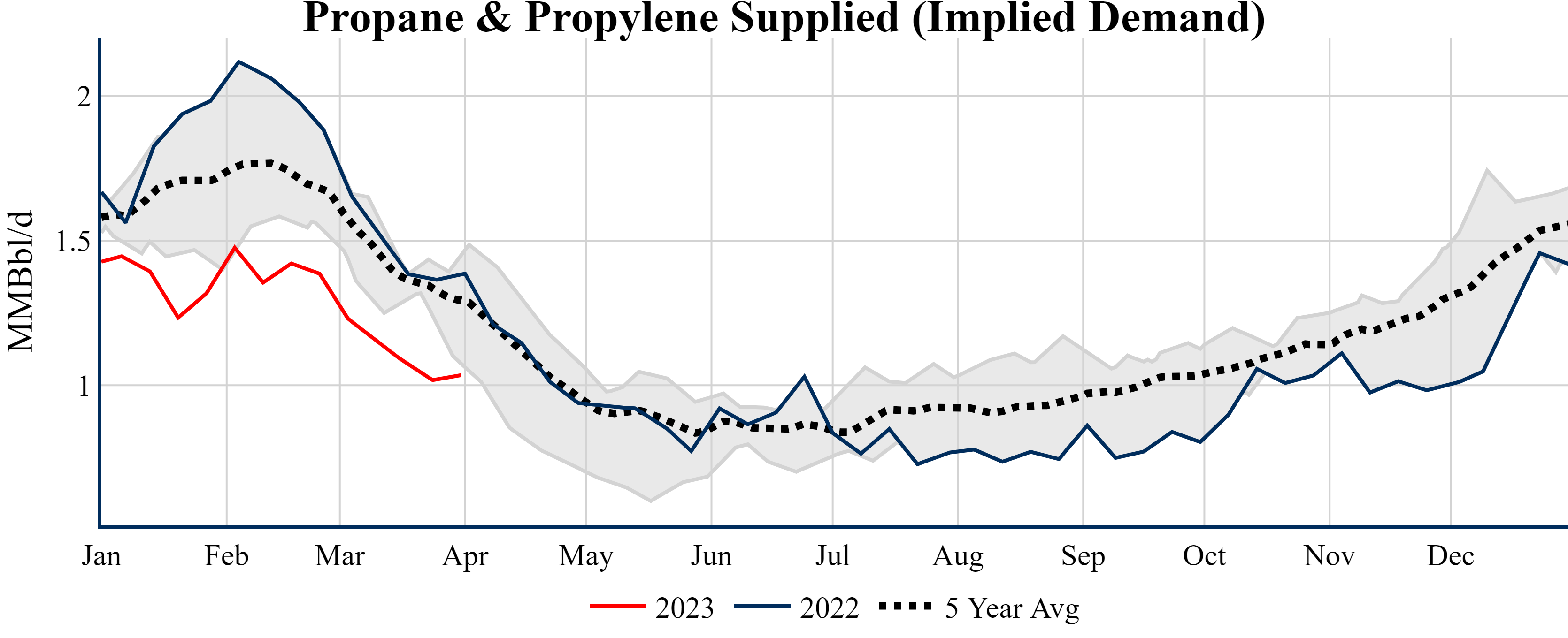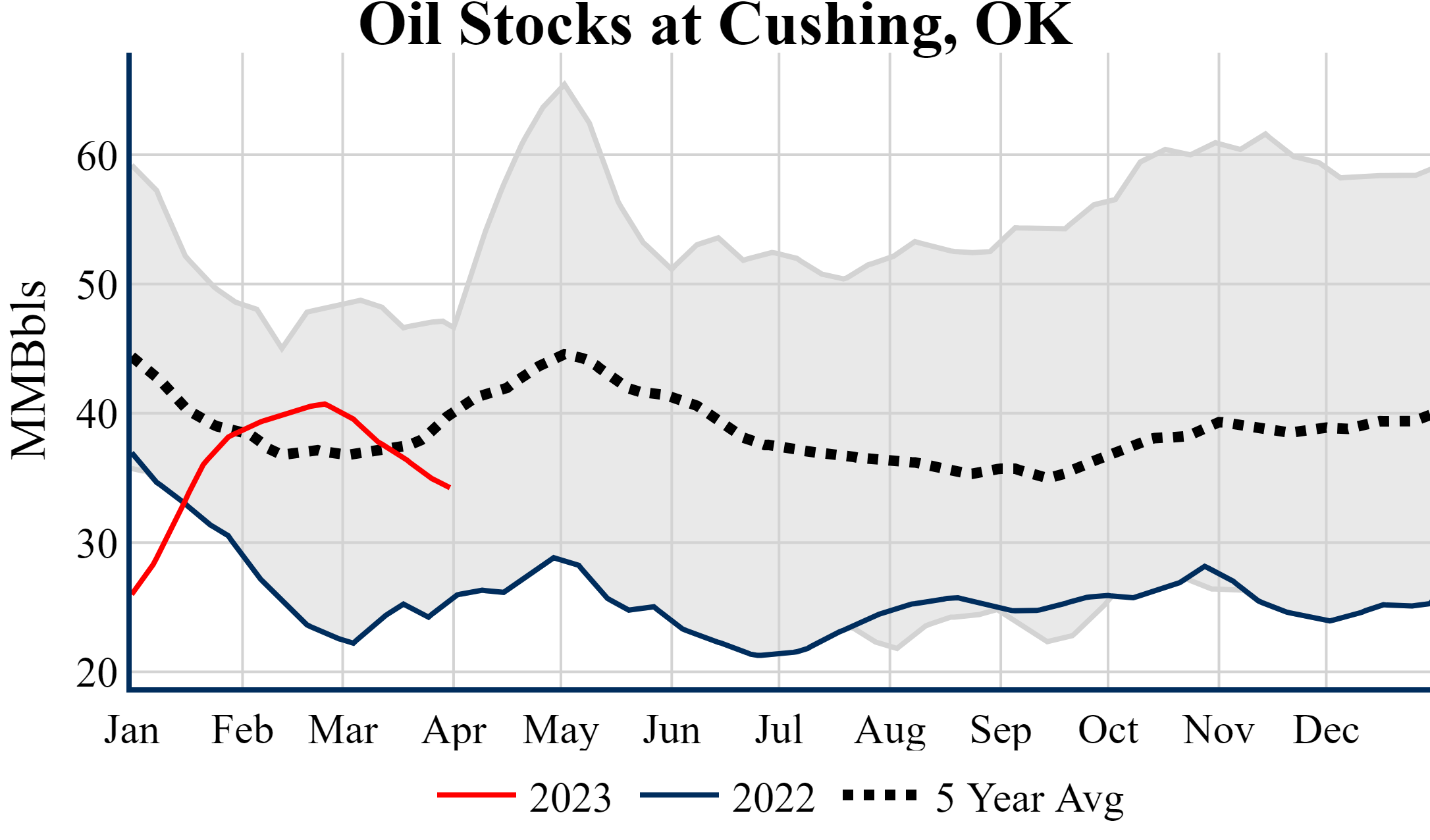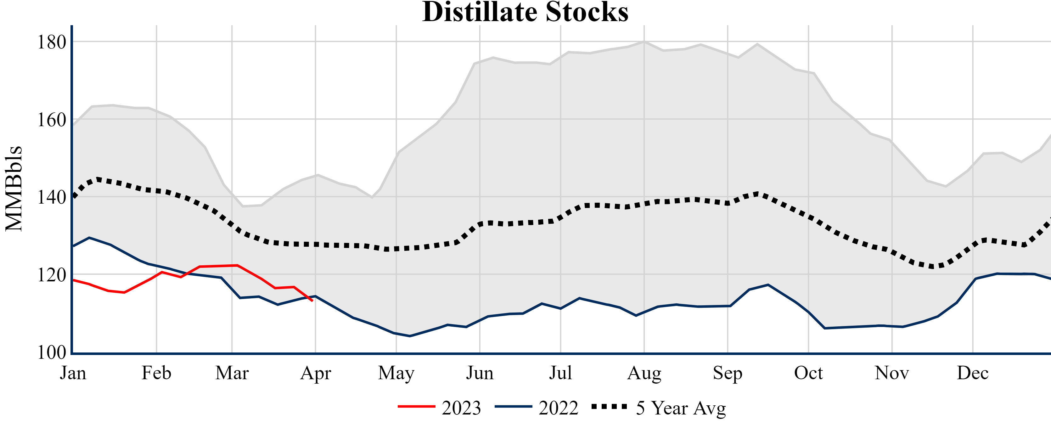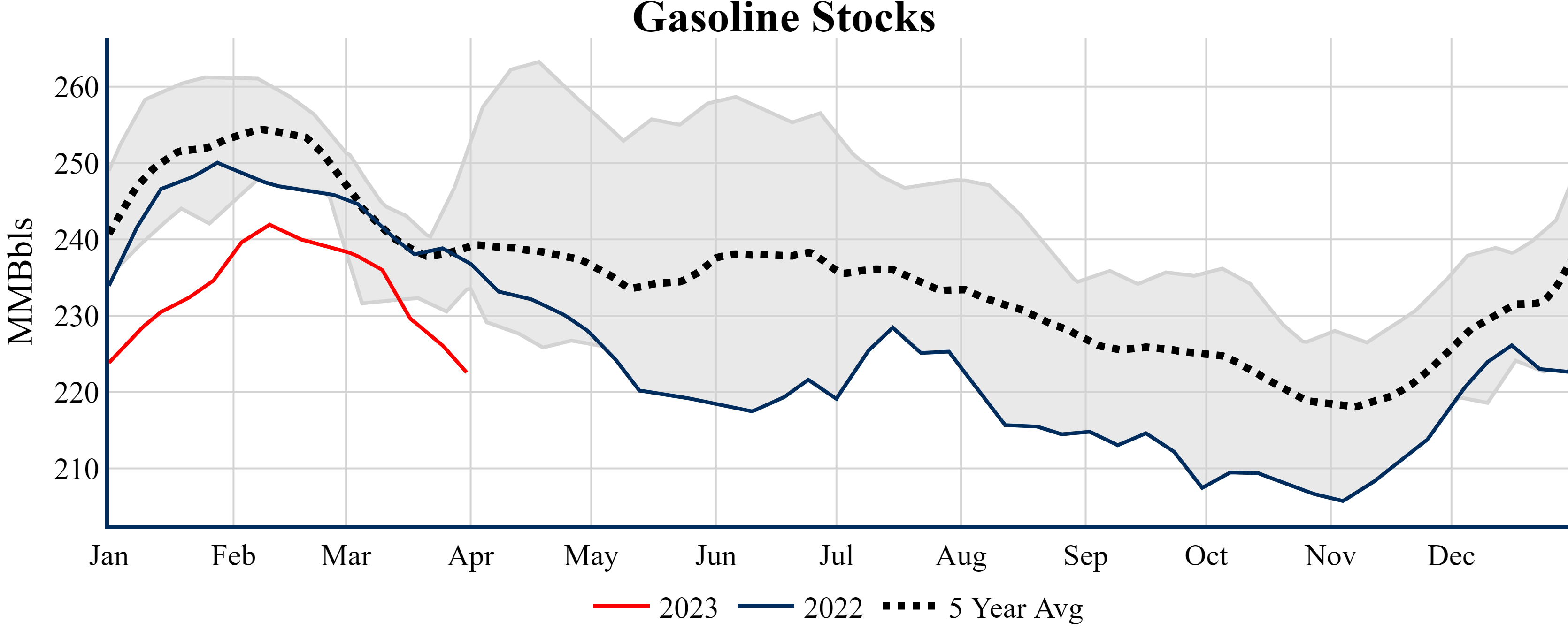 Inventories for the U.S. are now at a surplus of 57.90 MMBbls (14.1%) to last year, and a surplus of 17.10 MMBbls (3.8%) to the five-year average.