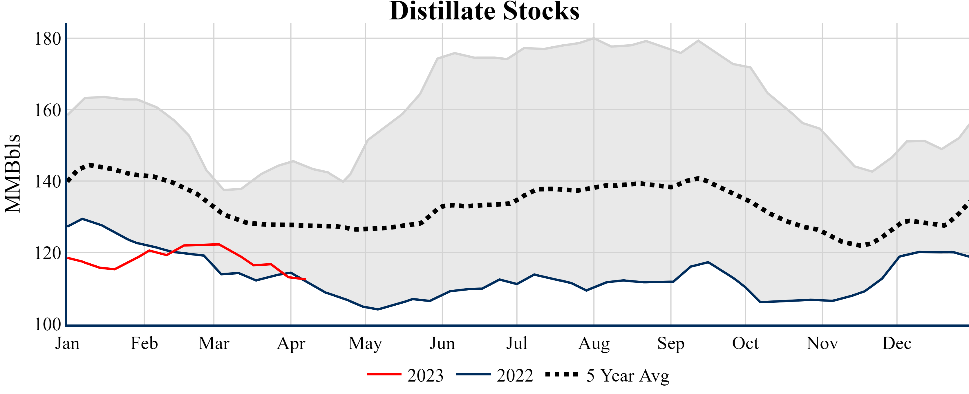 Inventories for the U.S. are now at a surplus of 50.10 MMBbls (11.9%) to last year, and a surplus of 12.20 MMBbls (2.7%) to the five-year average.