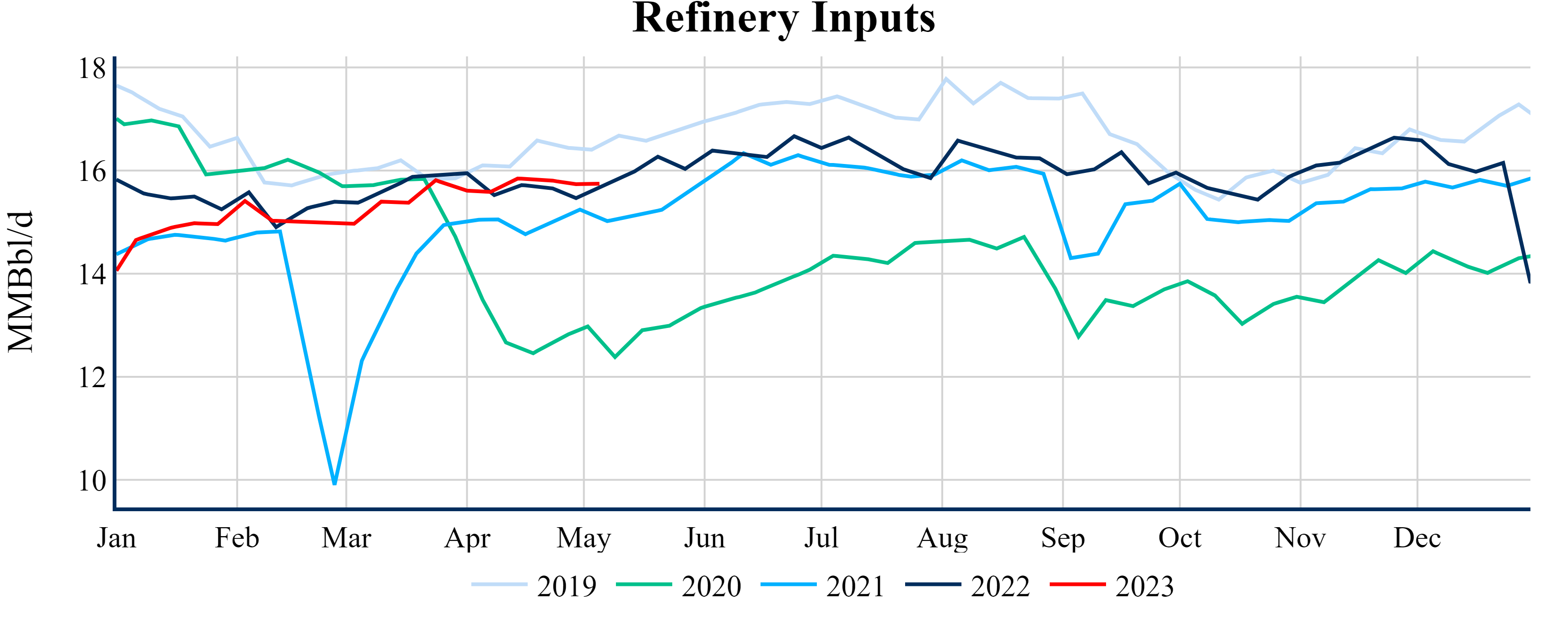 Inventories for the U.S. are now at a surplus of 39.60 MMBbls (9.4%) to last year, and a deficit of 5.70 MMBbls (-1.2%) to the five-year average.