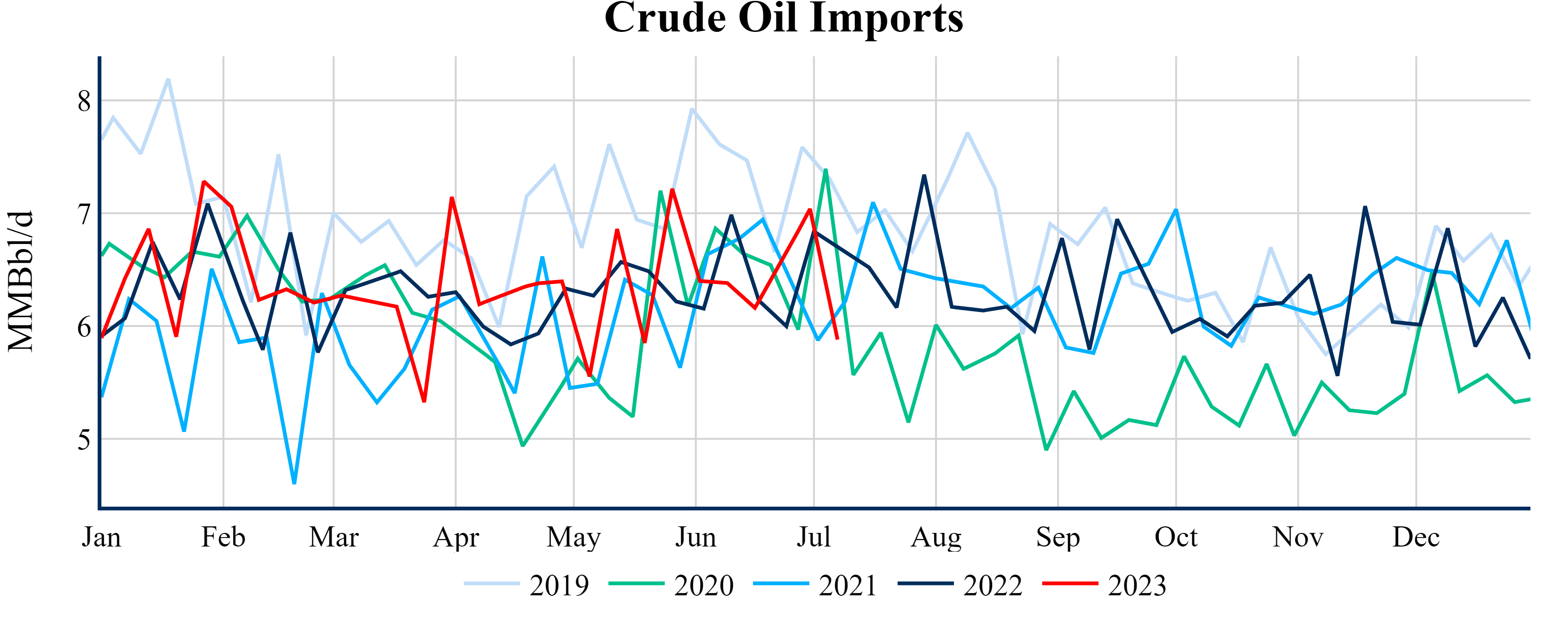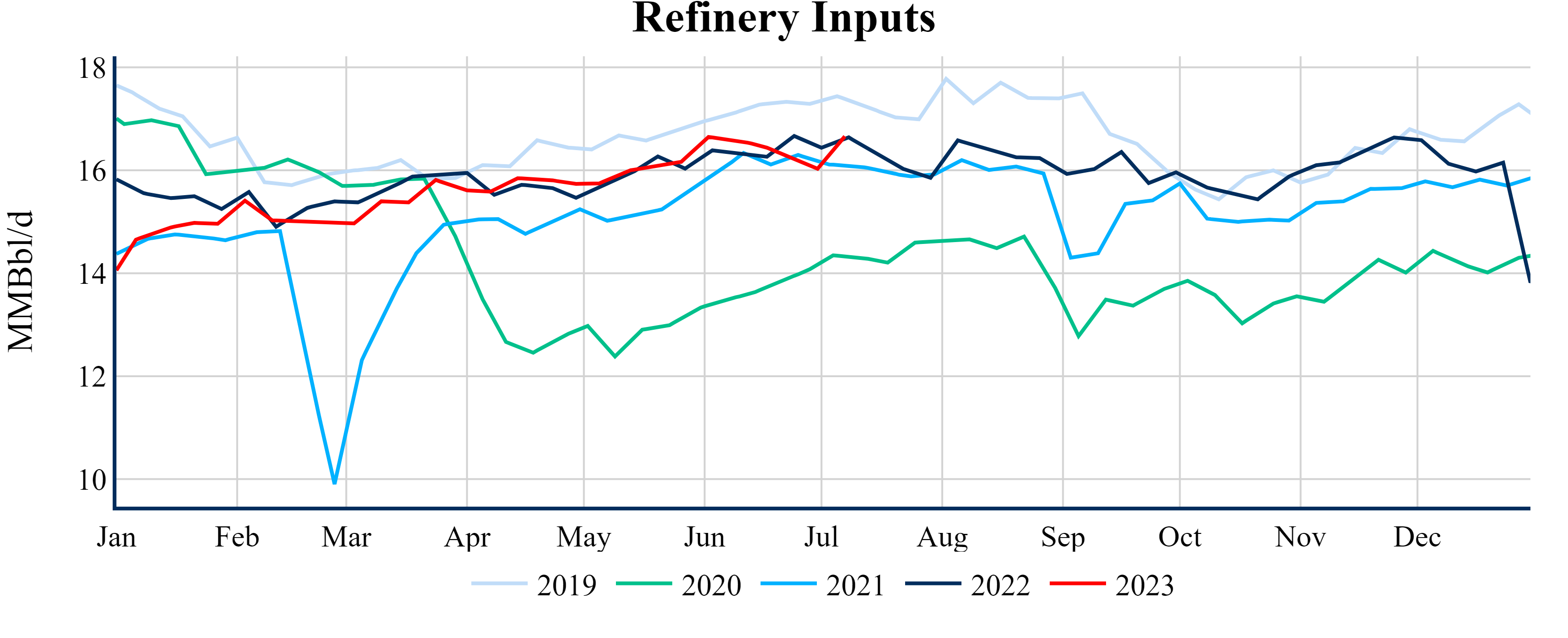 Inventories for the U.S. are now at a surplus of 31.50 MMBbls (7.4%) to last year, and a surplus of 4.80 MMBbls (1.1%) to the five-year average.