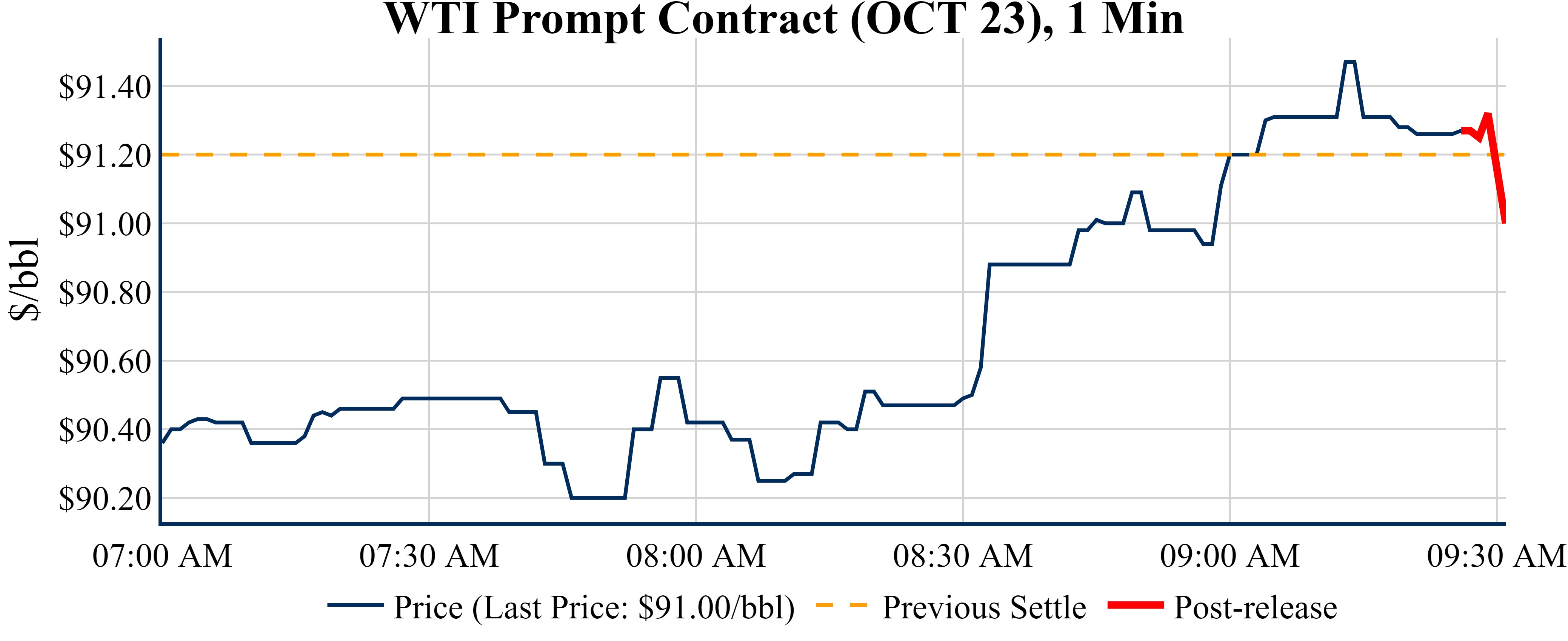 Prices were down in the five minutes following the announcement, to $91.15 from $91.26 just before 09:30 AM.