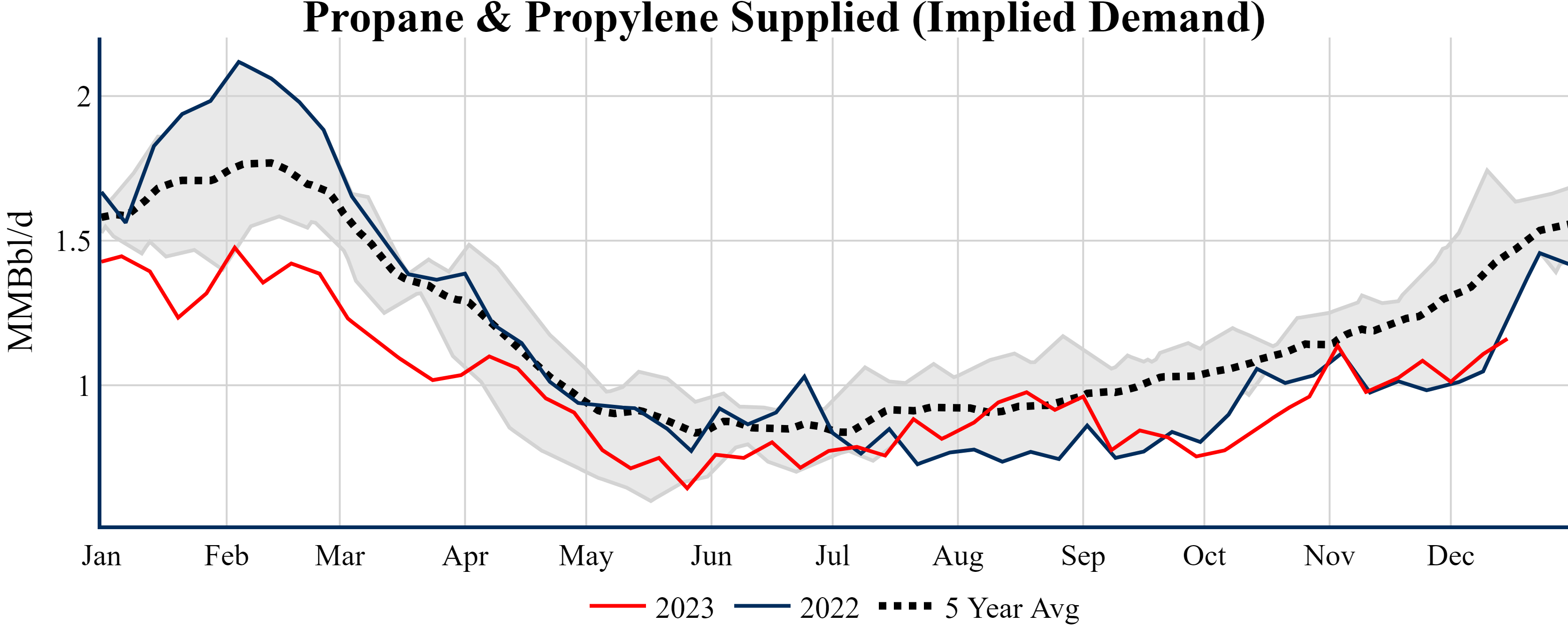 Inventories for the U.S. are now at a surplus of 24.60 MMBbls (5.9%) to last year, and a deficit of 2.40 MMBbls (-0.5%) to the five-year average.