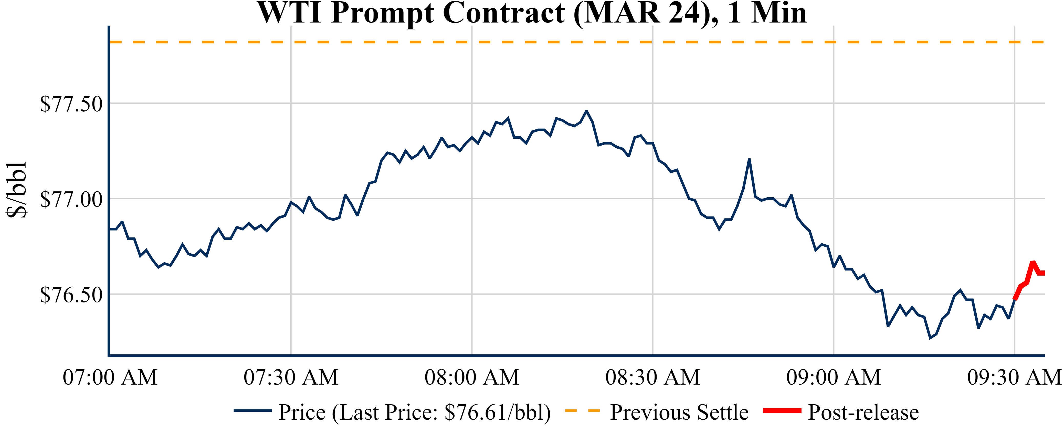 Prices were up in the five minutes following the announcement, to $76.61 from $76.47 just before 09:30 AM.