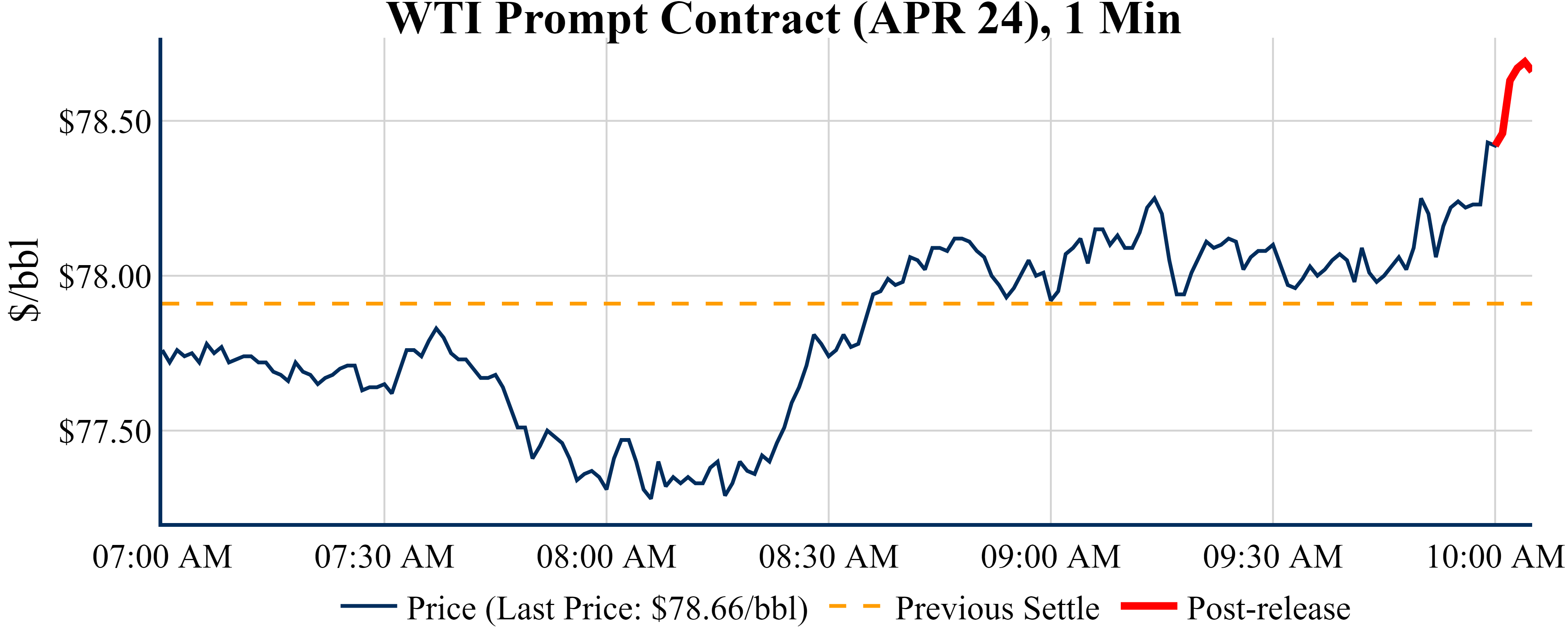 Prices were up in the five minutes following the announcement, to $78.66 from $78.42 just before 10:00 AM.