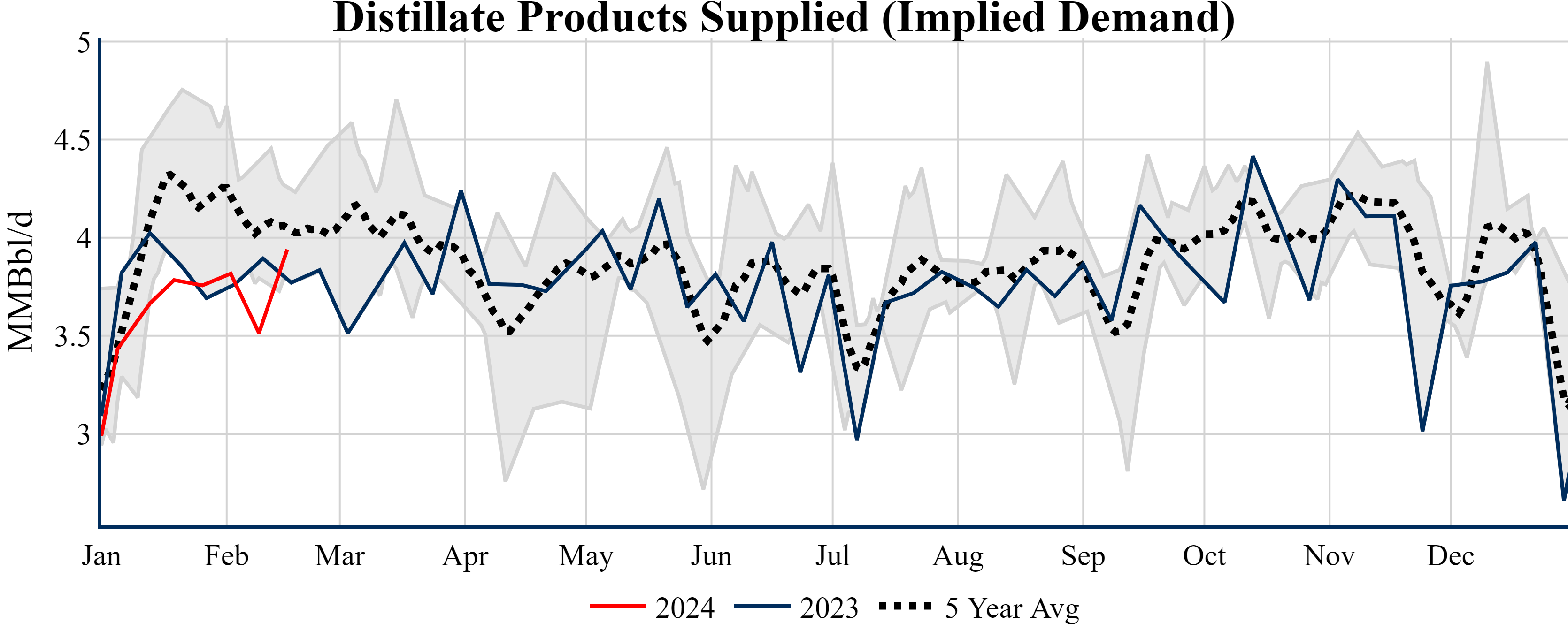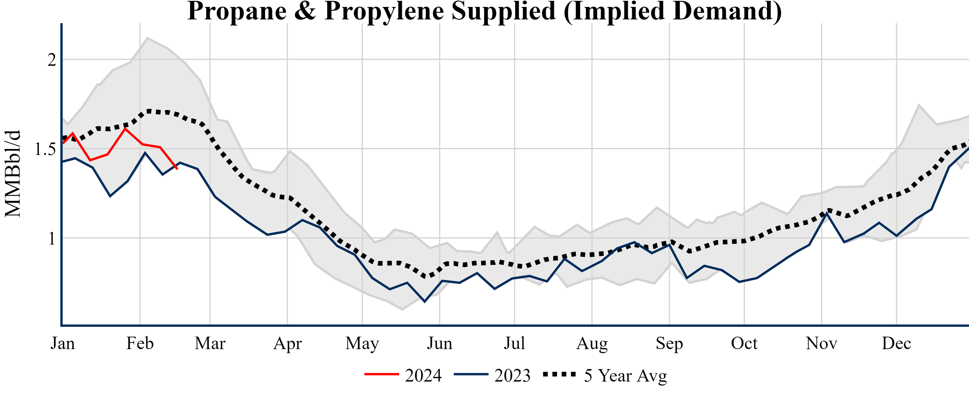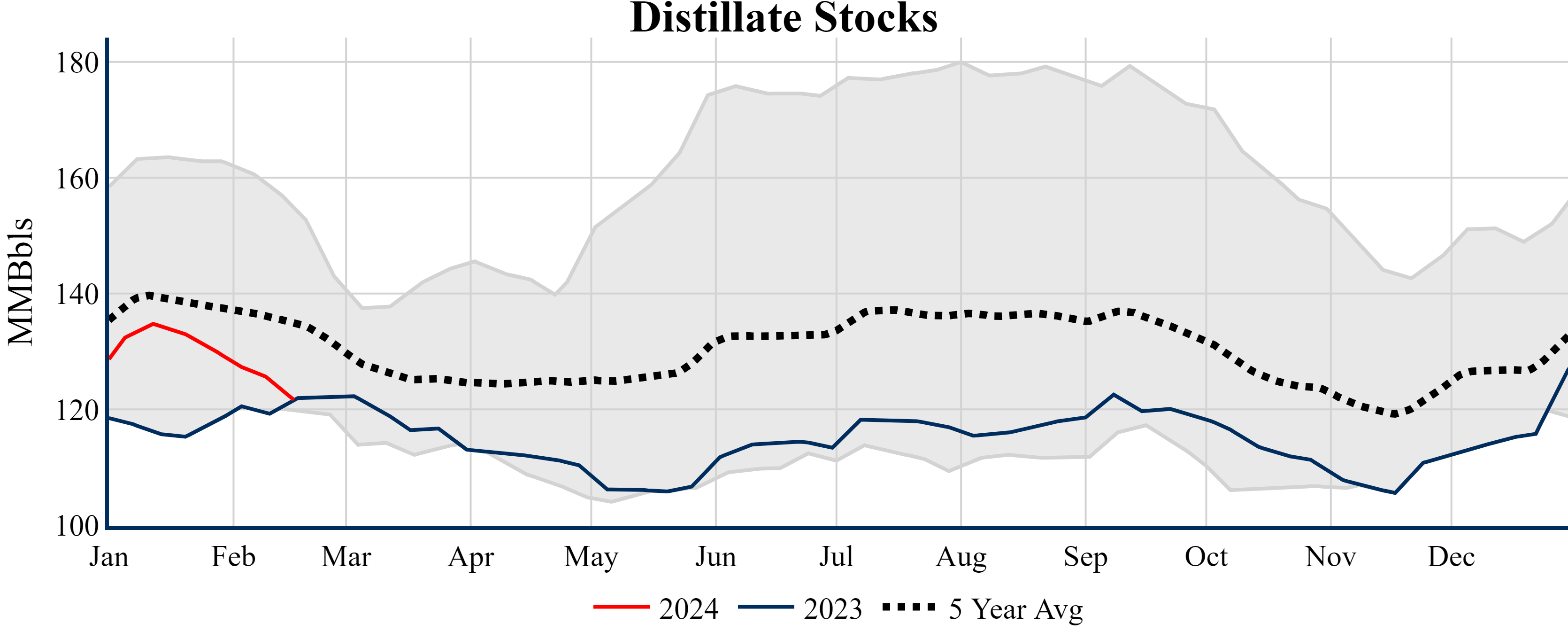 Inventories for the U.S. are now at a deficit of 35.00 MMBbls (-7.3%) to last year, and a deficit of 7.30 MMBbls (-1.6%) to the five-year average.