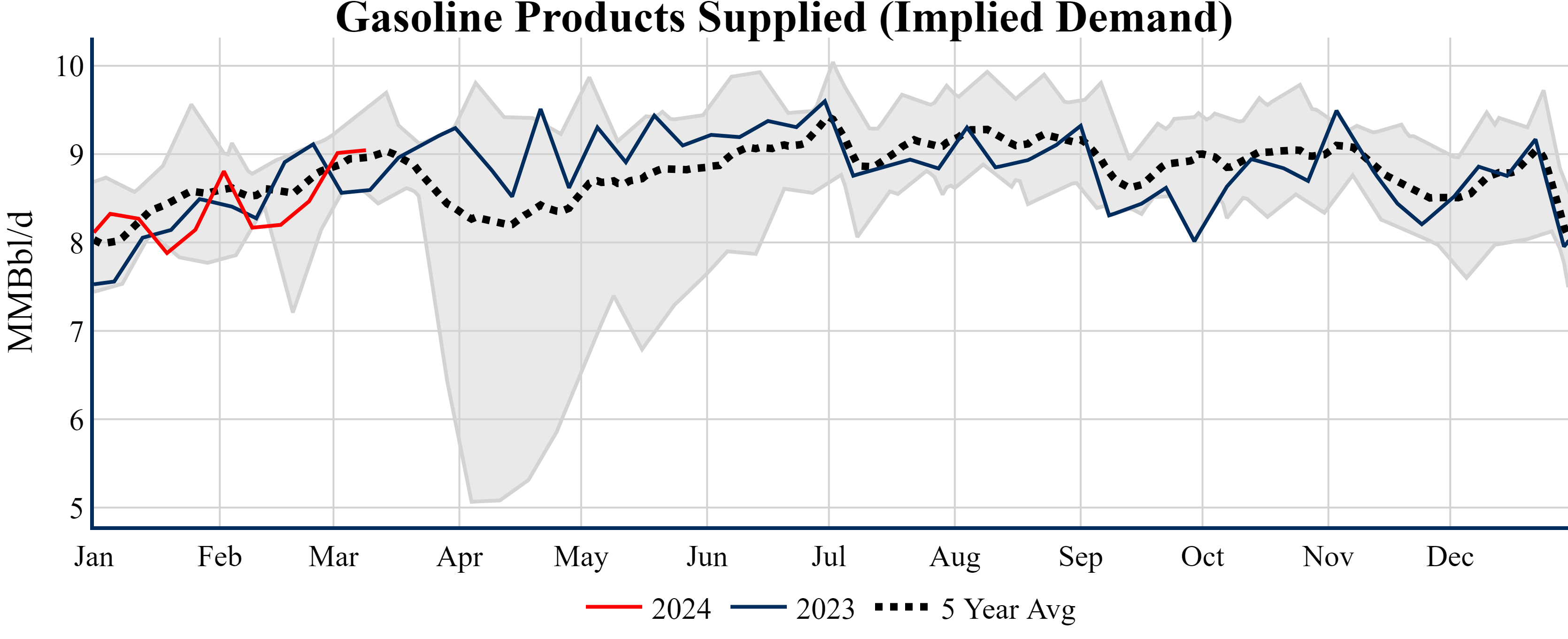 Inventories for the U.S. are now at a deficit of 32.80 MMBbls (-6.8%) to last year, and a deficit of 11.90 MMBbls (-2.6%) to the five-year average.