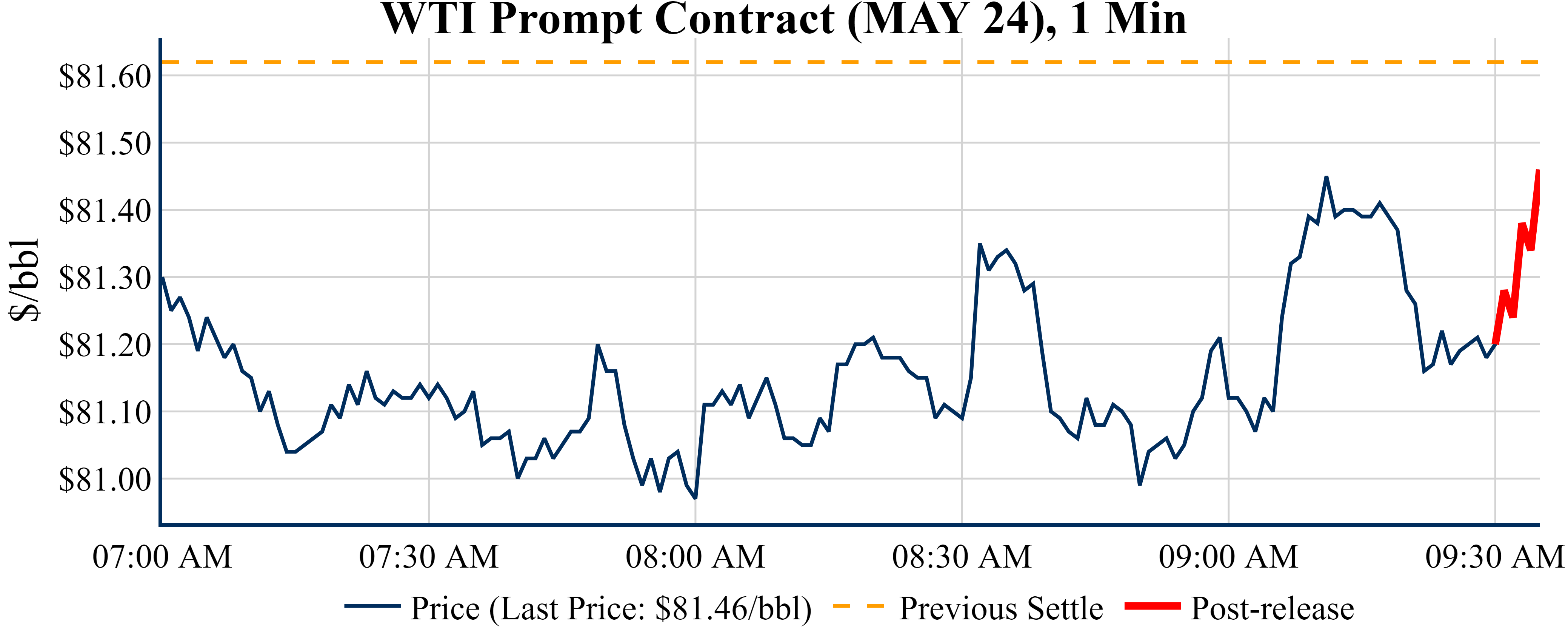 Prices were up in the five minutes following the announcement, to $81.46 from $81.20 just before 09:30 AM.