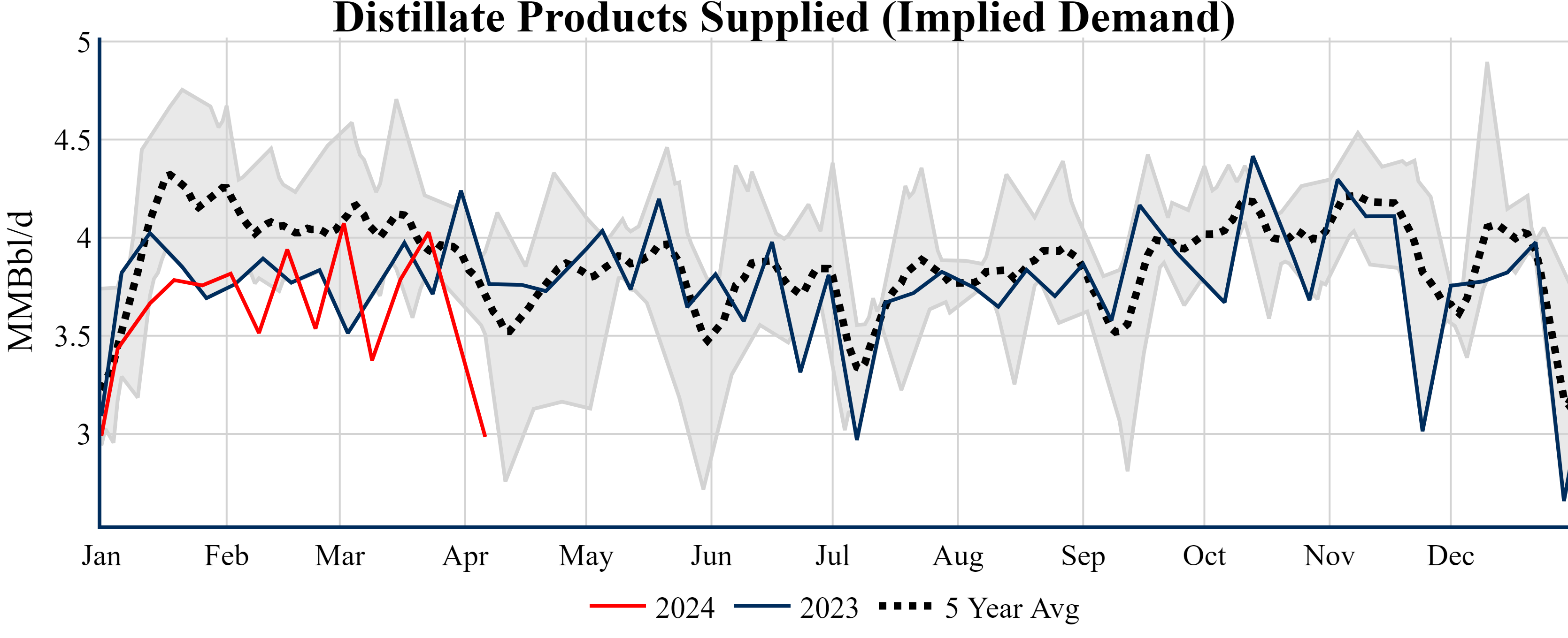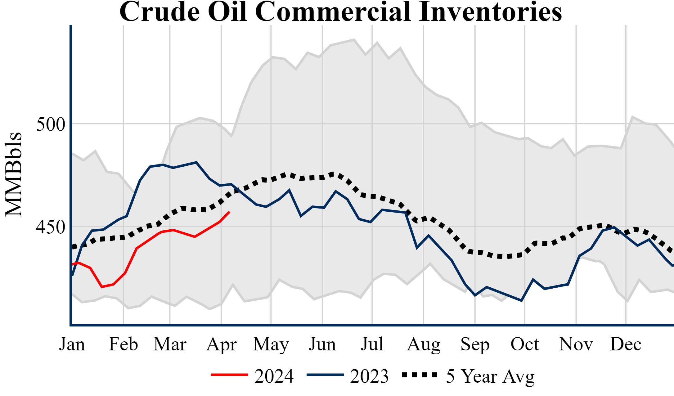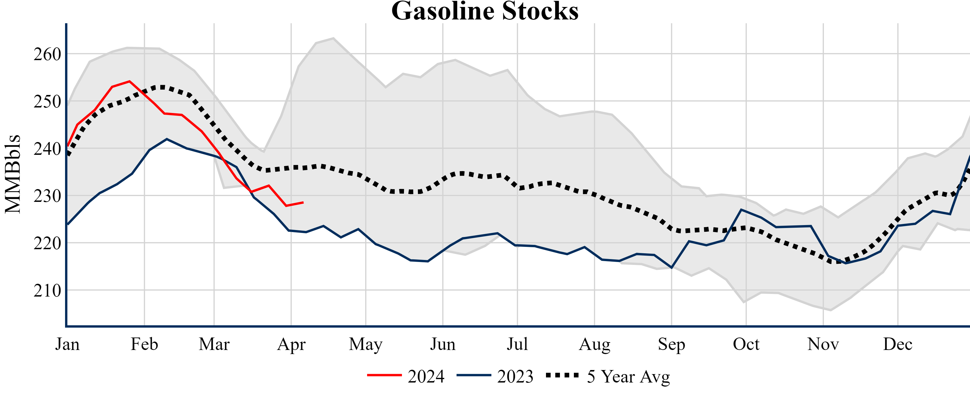 Inventories for the U.S. are now at a deficit of 13.20 MMBbls (-2.8%) to last year, and a deficit of 8.90 MMBbls (-1.9%) to the five-year average.