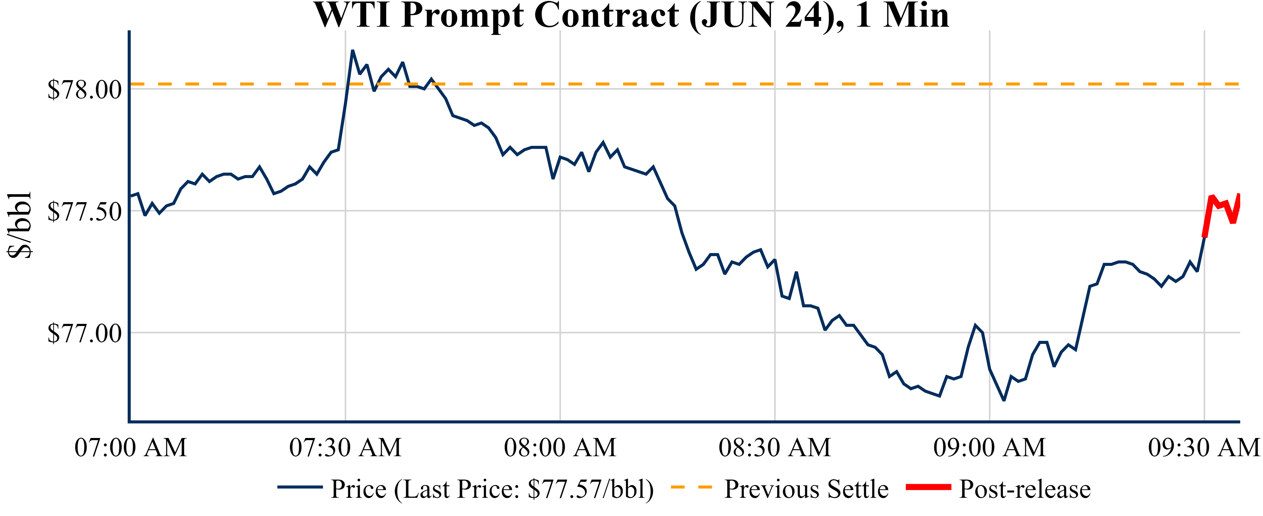 Prices were up in the five minutes following the announcement, to $77.57 from $77.39 just before 09:30 AM.