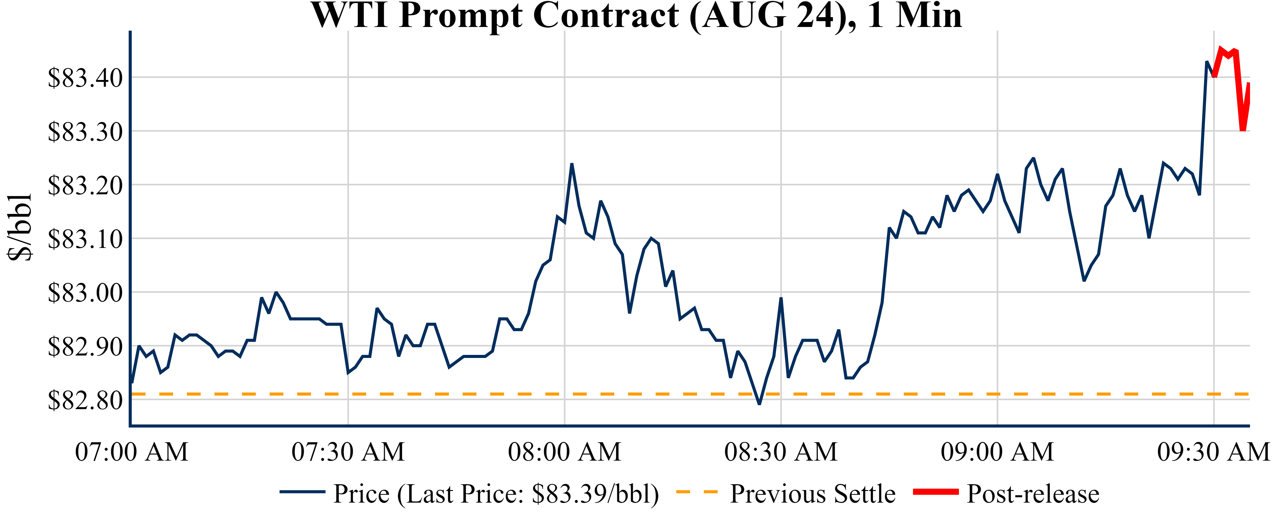 Prices were down in the five minutes following the announcement, to $83.39 from $83.40 just before 09:30 AM.