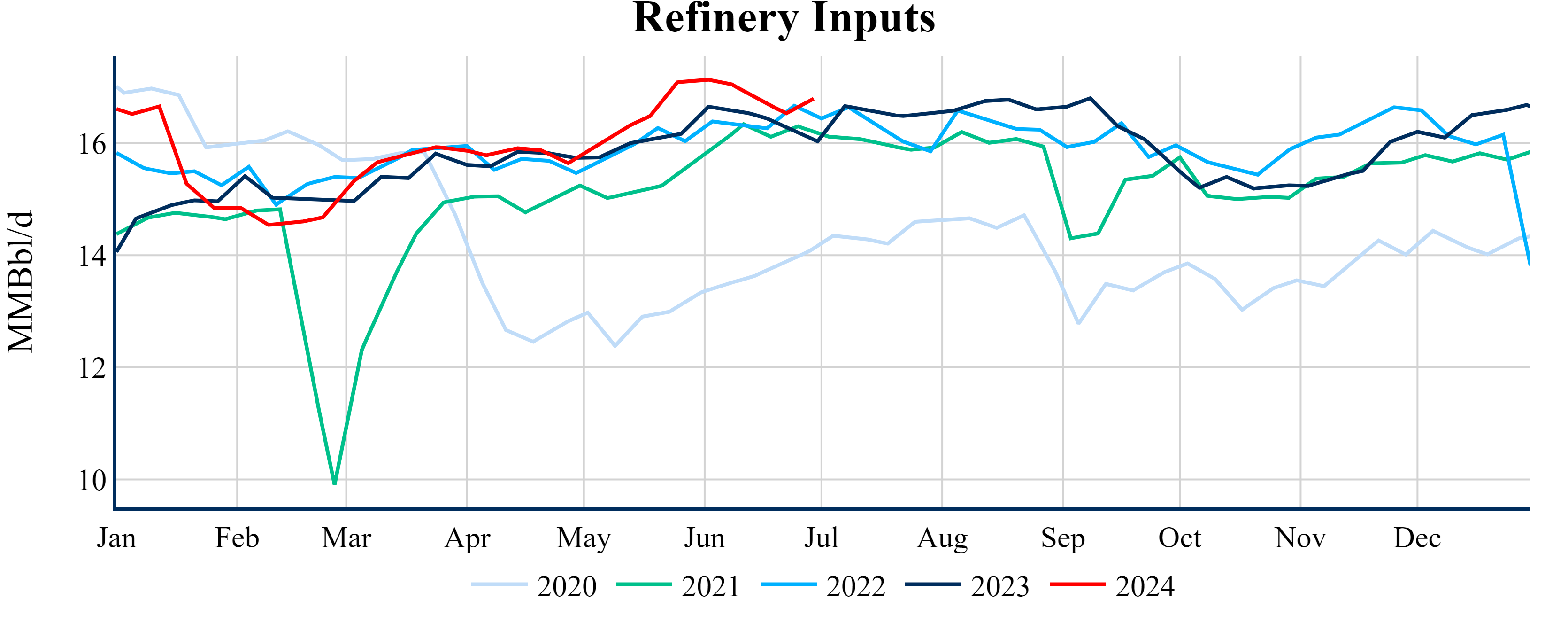 Inventories for the U.S. are now at a deficit of 3.90 MMBbls (-0.9%) to last year, and a deficit of 16.40 MMBbls (-3.5%) to the five-year average.