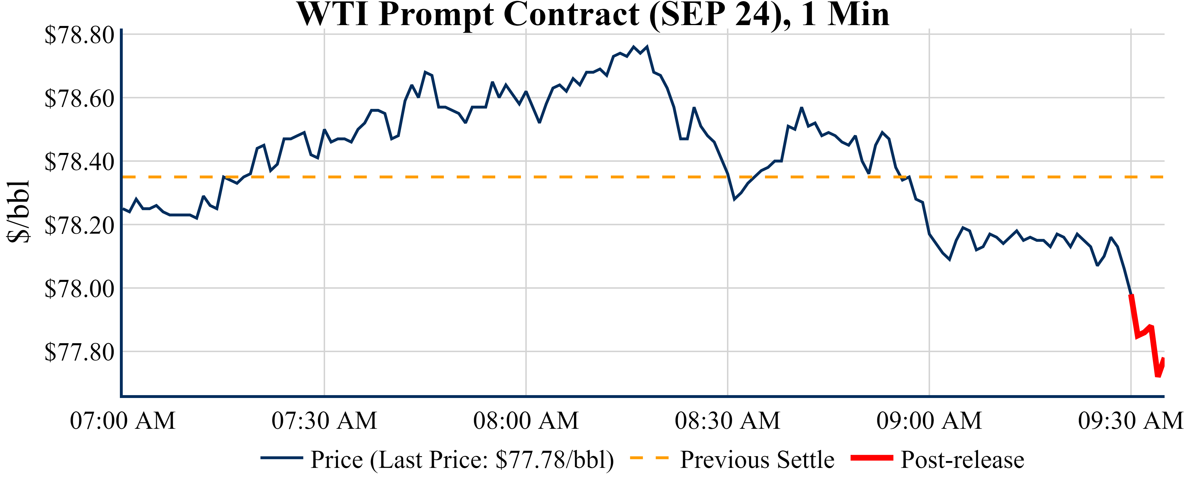 Prices were down in the five minutes following the announcement, to $77.78 from $77.98 just before 09:30 AM.