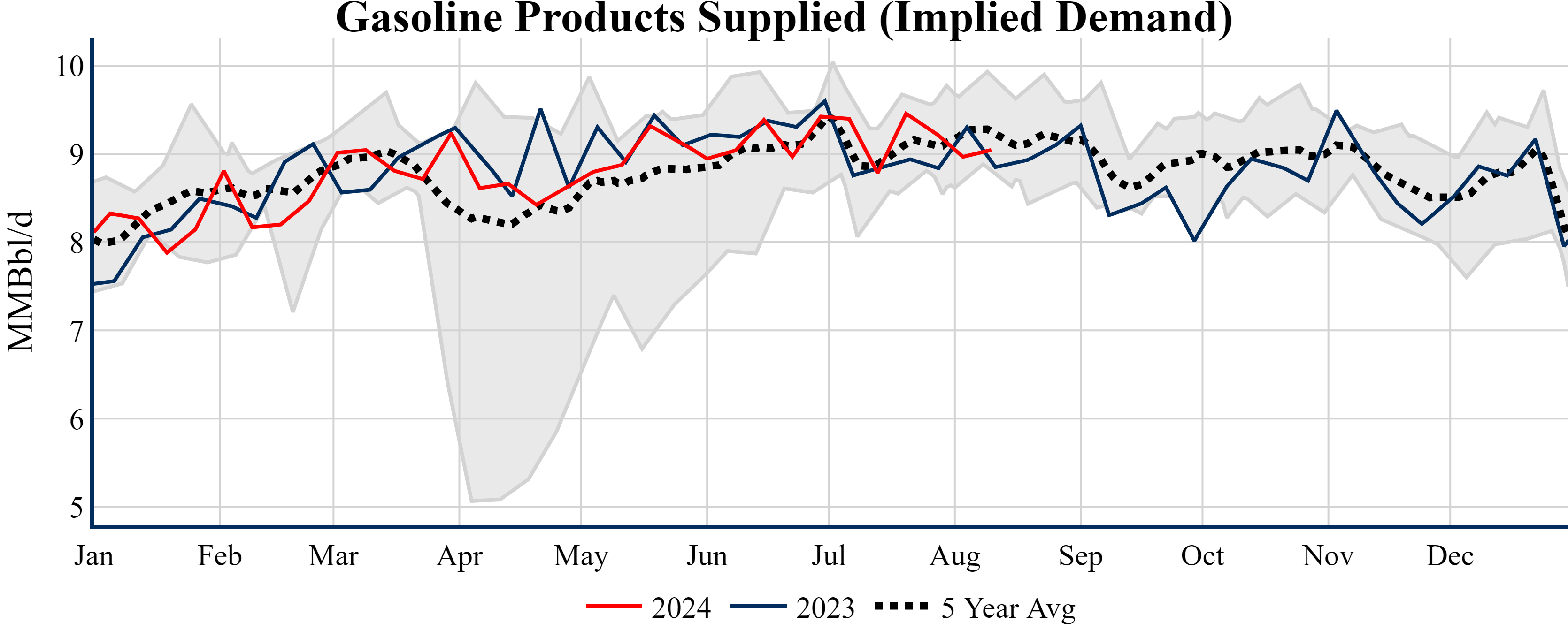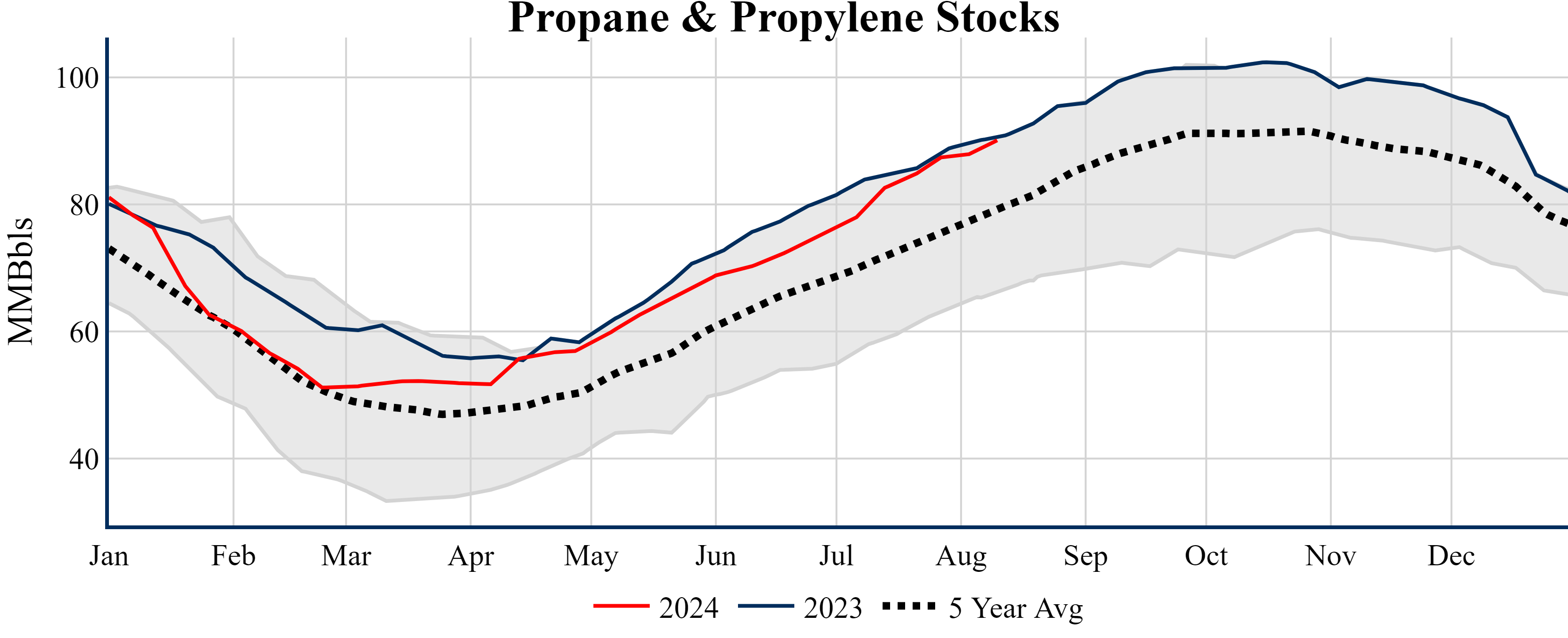 Inventories for the U.S. are now at a deficit of 9.80 MMBbls (-2.2%) to last year, and a deficit of 21.00 MMBbls (-4.6%) to the five-year average.