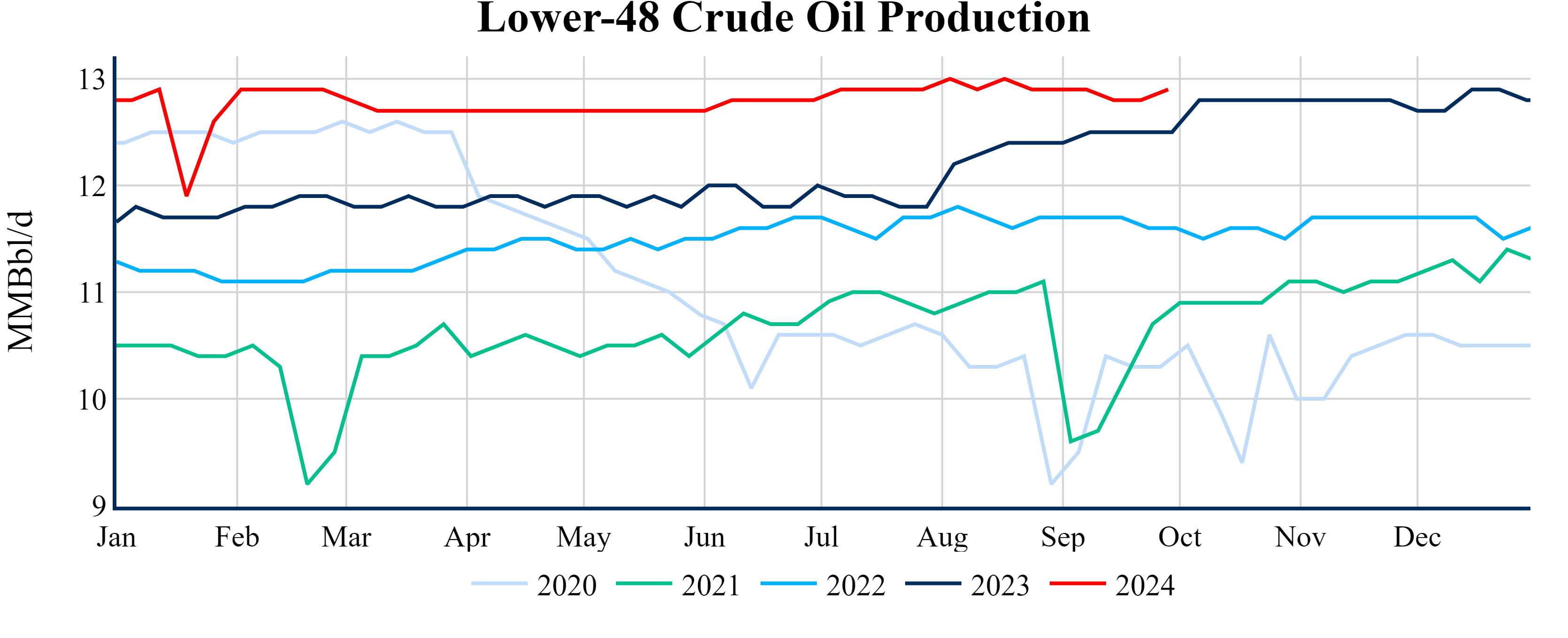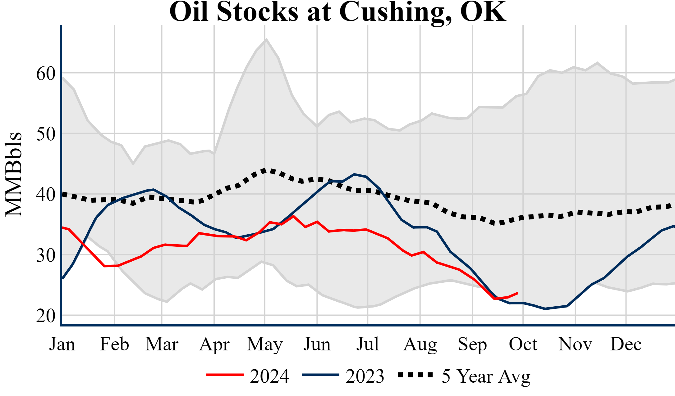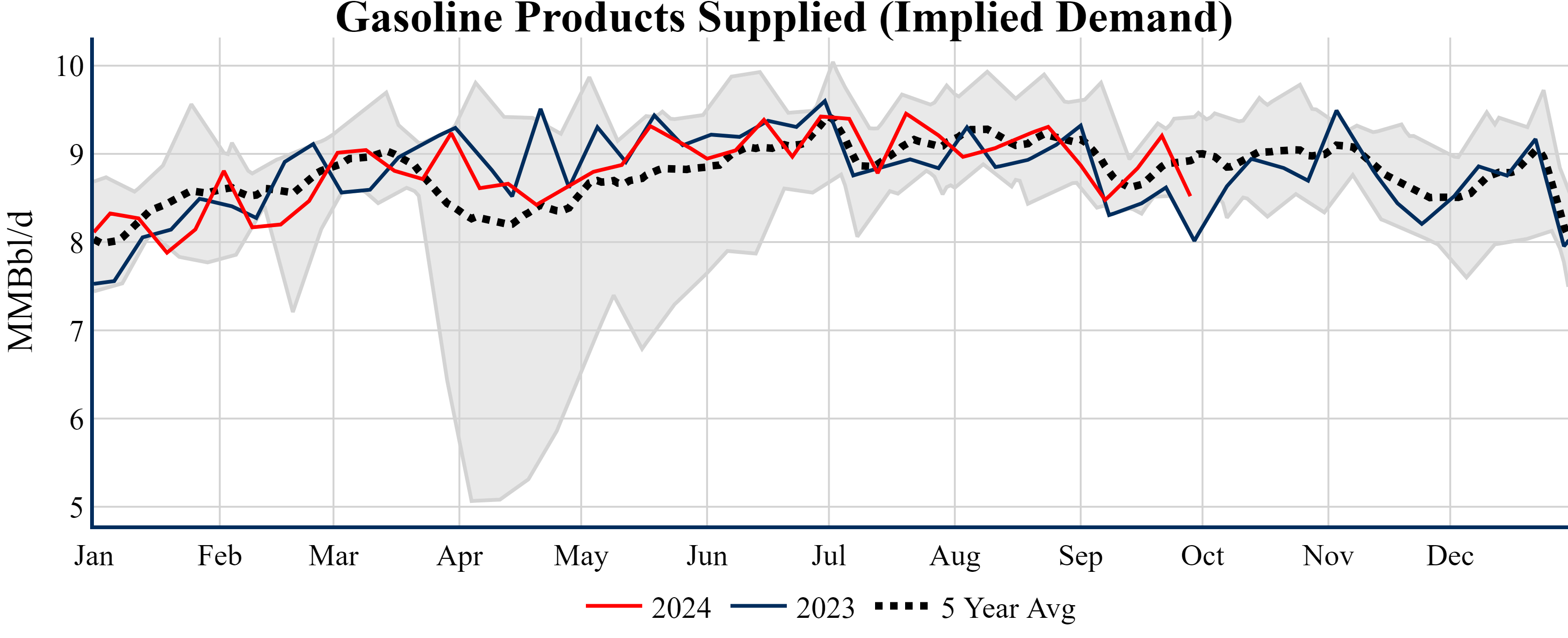 Inventories for the U.S. are now at a surplus of 2.60 MMBbls (0.6%) to last year, and a deficit of 19.00 MMBbls (-4.4%) to the five-year average.