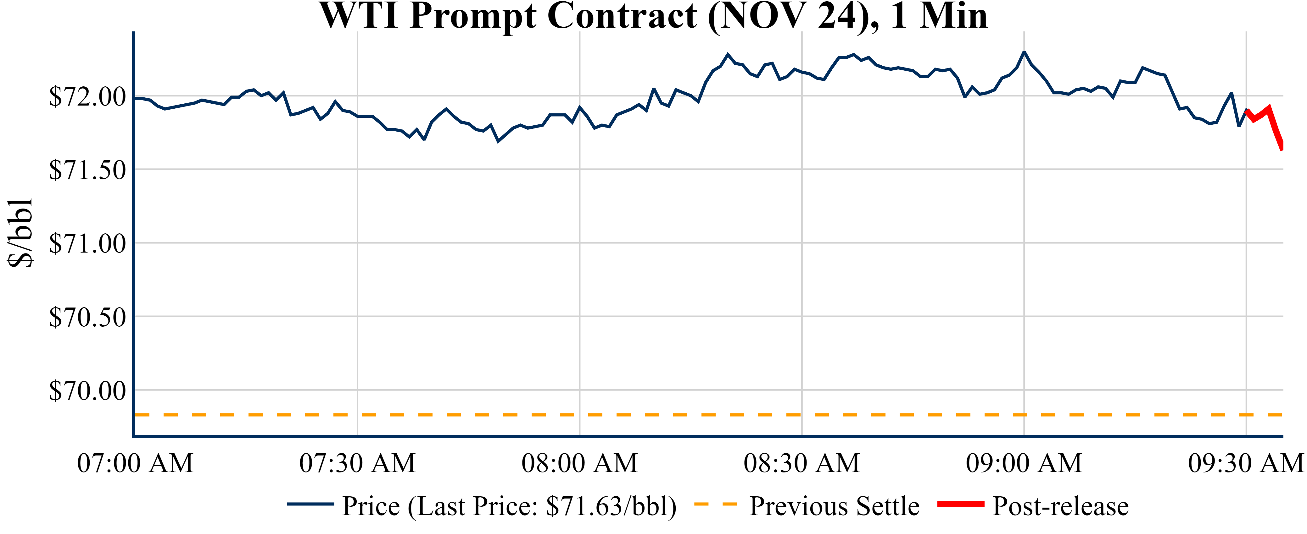 Prices were modestly down in the five minutes following the announcement, to $71.63 from $71.90 just before 09:30 AM.