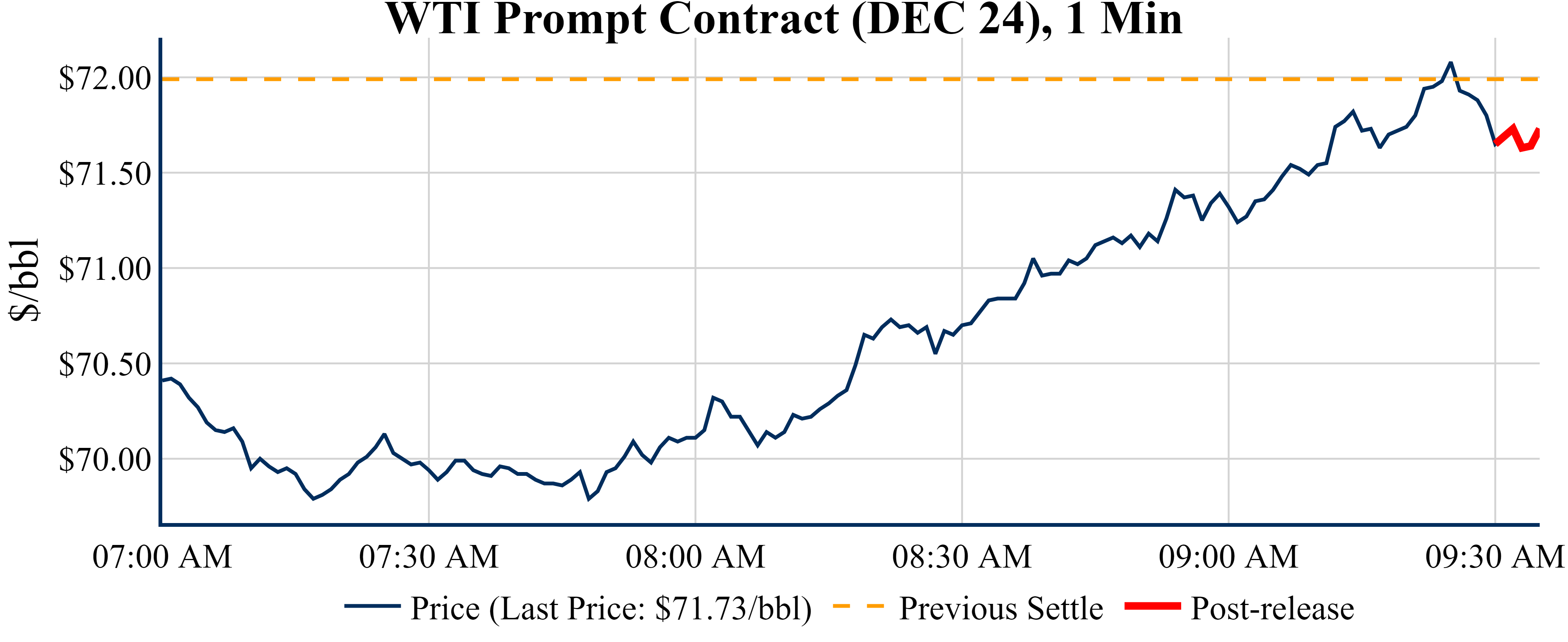 Prices were up in the five minutes following the announcement, to $71.73 from $71.65 just before 09:30 AM.