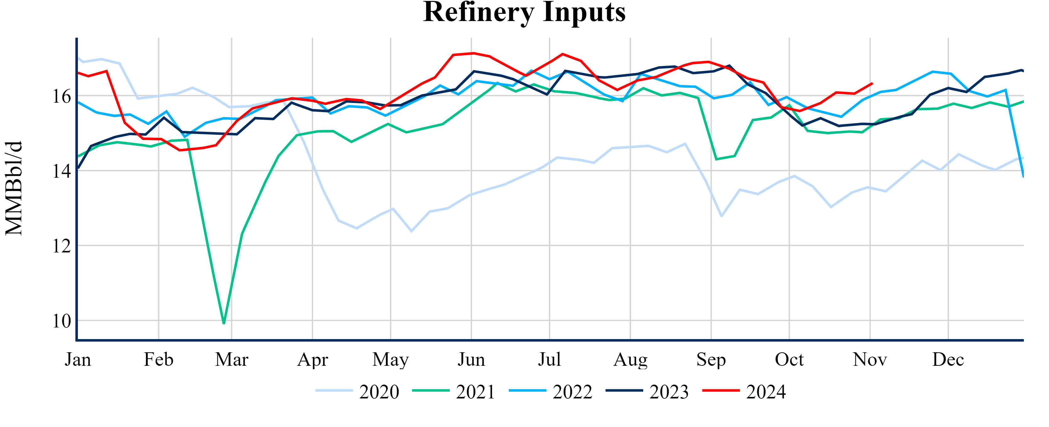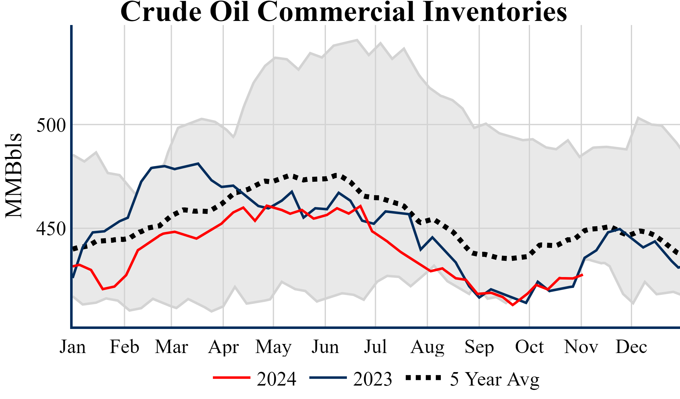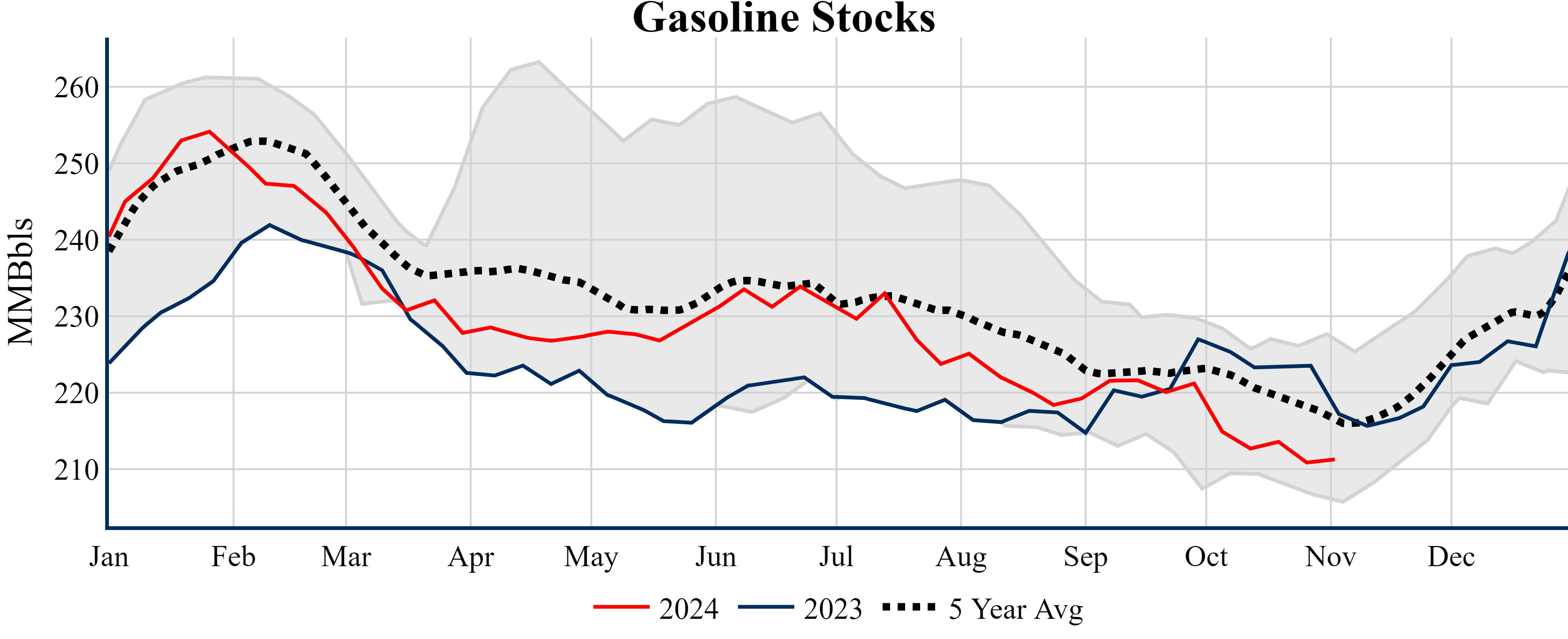 Inventories for the U.S. are now at a deficit of 6.10 MMBbls (-1.4%) to last year, and a deficit of 20.50 MMBbls (-4.6%) to the five-year average.