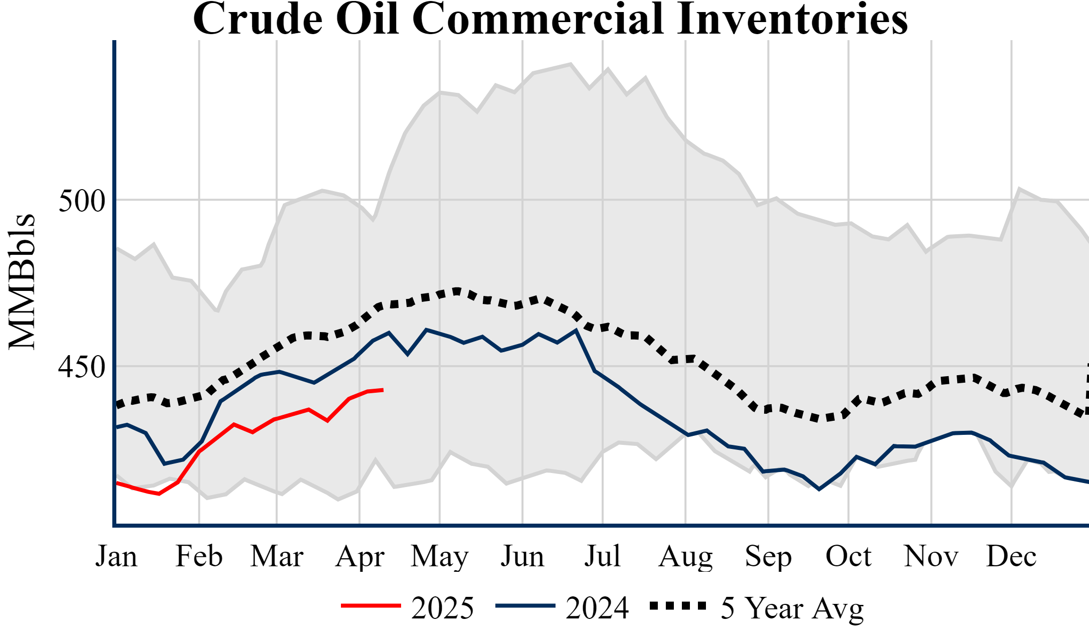 Inventories for the U.S. are now at a deficit of 16.40 MMBbls (-3.6%) to last year, and a deficit of 25.50 MMBbls (-5.4%) to the five-year average.