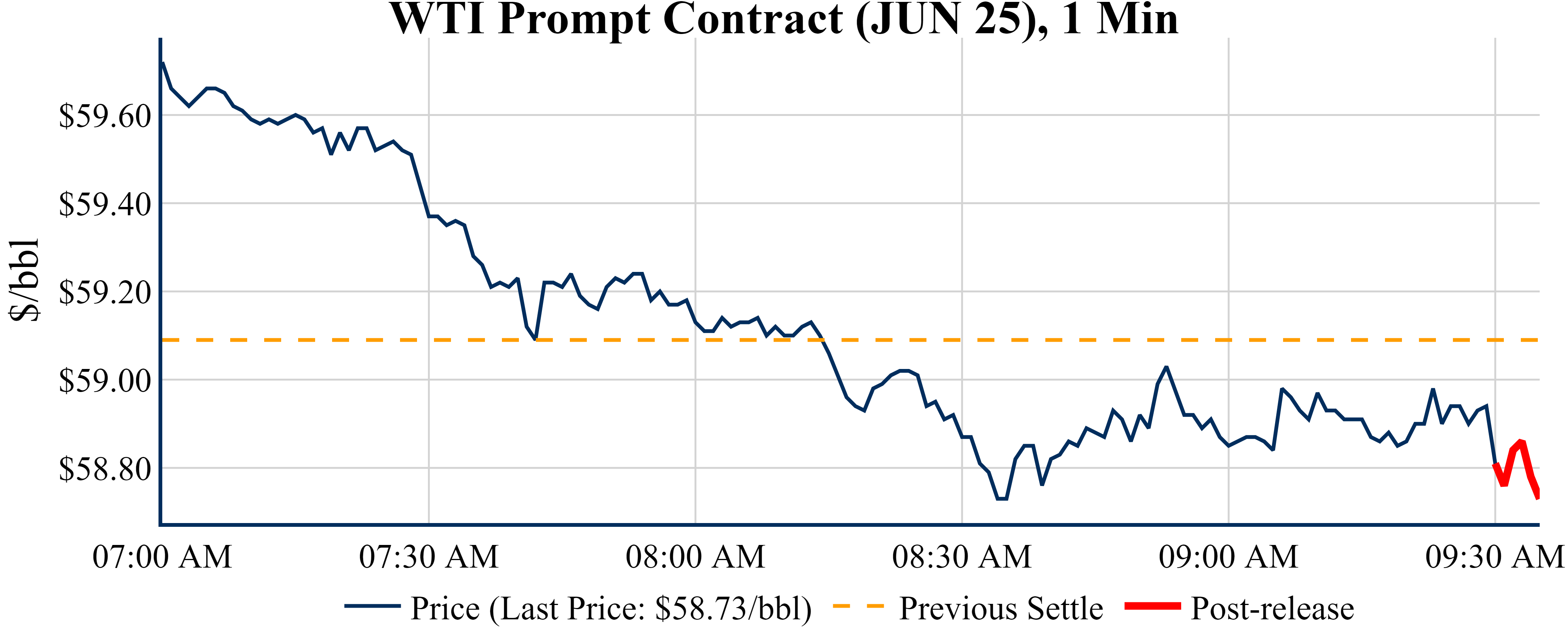 Prices were down in the five minutes following the announcement, to $58.73 from $58.81 just before 09:30 AM.
