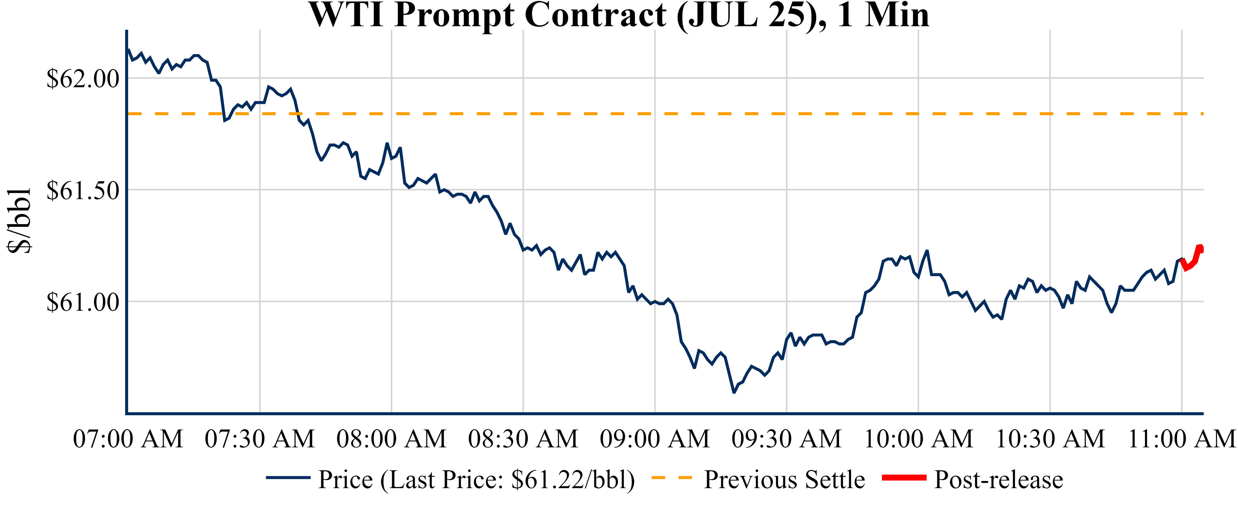 Prices were up in the five minutes following the announcement, to $61.22 from $61.19 just before 11:00 AM.