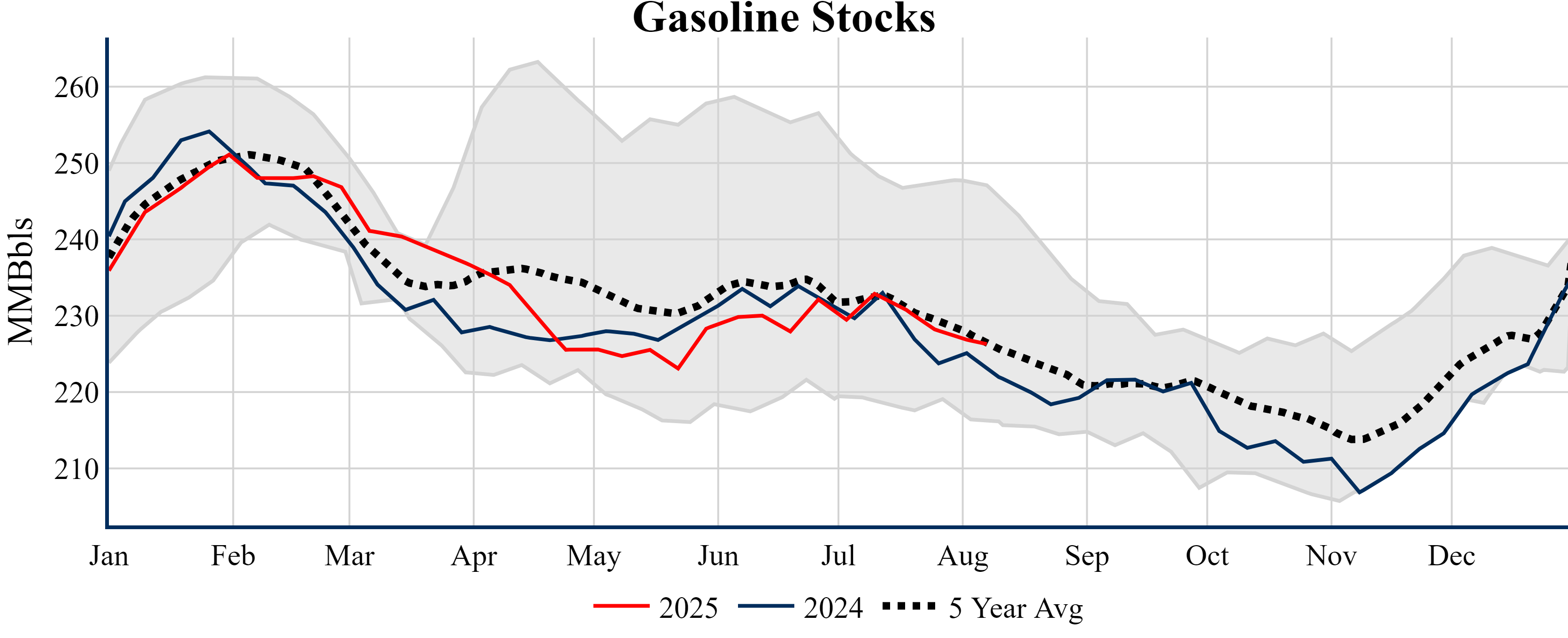 Inventories for the U.S. are now at a deficit of 3.60 MMBbls (-0.8%) to last year, and a deficit of 24.00 MMBbls (-5.3%) to the five-year average.